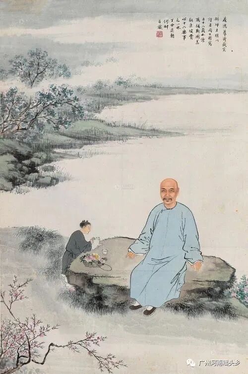其子杨其光(1862-1925)曾追忆:“居梅生、何丹山、熊笛江、李子虎、潘鸿轩、袁颜卿、莫子青、陈古樵、符子琴、居古泉诸世丈来添茅小屋或鹤洲草堂作画,数十年间,觞咏颇盛,夜则管弦度曲,备极欢娱,今忆及之,为赋是解。”足见其鹤洲草堂为清末广东文人墨客、文化名流往还唱酬的中心。杨氏长居廉十岁,为乡友,二人交往长达四十余载,关系甚笃。居廉尝为其绘事,存世所见有十数件画作写赠椒翁仁兄大人。