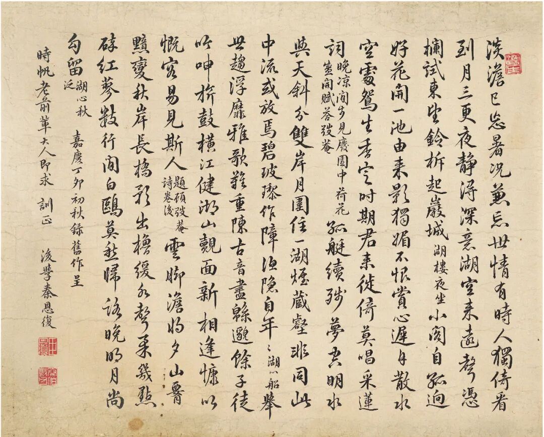 款识:嘉庆丁卯初秋,录旧作呈时帆老前辈大人即求训正,后学秦恩复。