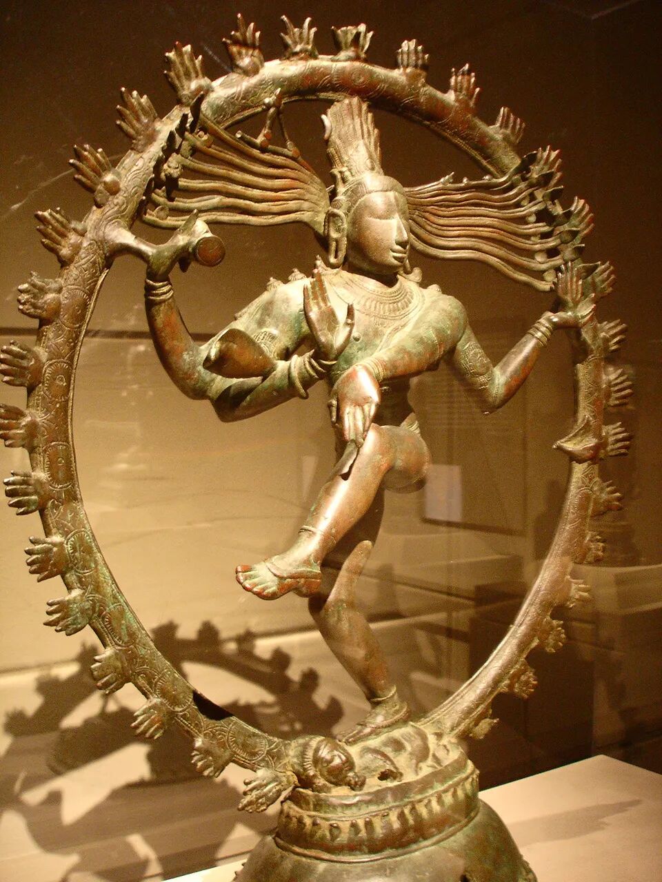 湿婆,印度教三大主神中最伟大的神,毗湿奴与梵天两位大神都在他之下。配偶为雪山神女,湿婆是宇宙与毁灭之神,印度哲学中「毁灭」有「再生」的含义,故也担当创造的职能。是印度人最为敬畏的神之一,其教派信徒奉其为最高神,有地、水、火、风、空、日、月、祭祀八种化身。此神被吸收入佛教后,成为居住在色究竟天的圣者,在大乘佛教中,更被视为是位居法云地的圣者。有些佛经中称其为大自在天,住色界之顶,为三千界之主。后来成为密宗护法之中的大黑天。湿婆还是舞蹈之神,在欢乐和悲伤时喜欢跳舞,创造刚柔两种舞蹈,被誉为舞王。舞蹈象征着湿婆的荣耀和宇宙的永恒运动,运动是为了使宇宙不朽。湿婆的善行之一是分布了七条圣河。恒河环绕着喜马拉雅山中梅卢山上的梵天之城,从山上汹涌奔泻而下。为了缓冲激流使之不至于酿成灾祸,湿婆站在河水下面,河水蜿蜒流经他束起的头发之后分成了七股,这7股河水便成了印度的七条圣河。