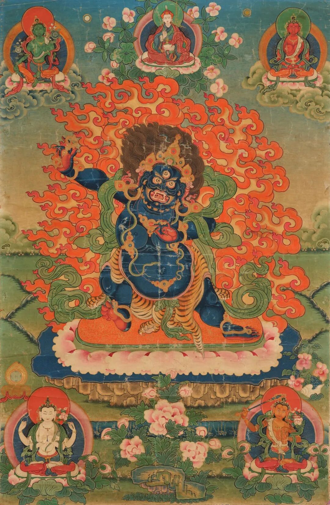 来源:克劳德·德·马图珍藏,布鲁塞尔,二十世纪七十年代前入藏双身像以佛母与佛父欢喜相拥之态,象征智慧与慈悲之结合,堪称藏传佛教艺术最具魅力之题材,成为其宗教之独特意涵及物质文化之代表符号。双身像频繁地被用于表现密集金刚等藏传佛教之本尊,为密宗中重要的一类「观想神祇」。其他备受喜爱之本尊包括胜乐金刚、大威德金刚、喜金刚及时轮金刚。这些本尊与围绕其身边的伴神置身于曼荼罗之中,构成密宗《无上瑜伽怛特罗》教法之主题。梵文Guhyasamaja译为「密集」,意即「引修密者至开悟之各秘密因素之集合」。此集合指向中央本尊与环绕坛城的眷属神祇。本尊密集金刚现身以金刚不动佛拥明妃触金刚之形象,表现位于坛城宫殿中央之金刚部五智如来中东方阿閦如来之秘密集合。五智如来之另四尊则以本尊手中所持之法器得以表现,即大日如来之法轮、无量寿如来之莲华、 宝生如来之摩尼以及不空成就如来之宝剑。造像高五十一点五厘米,为所有释出于世之密集金刚像、乃至所有西藏铸造之双身像中最为庞大的作品之一。![]()