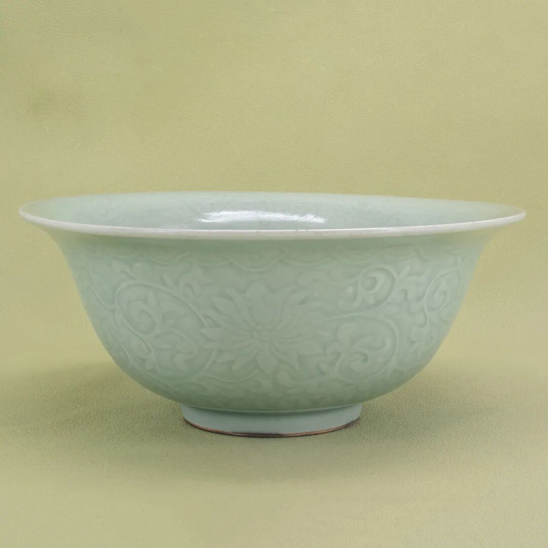 清乾隆 豆青釉模印缠枝莲纹大碗
