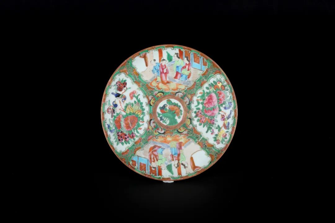 光绪广彩开光人物花卉纹盘