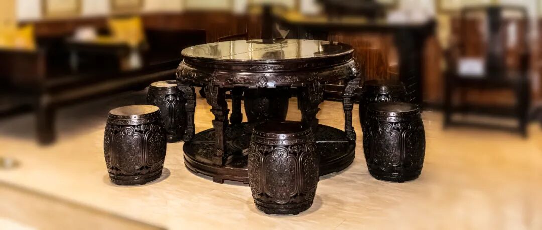 古今博览馆藏精品 · 印度小叶紫檀雕花圆桌、鼓墩七件套