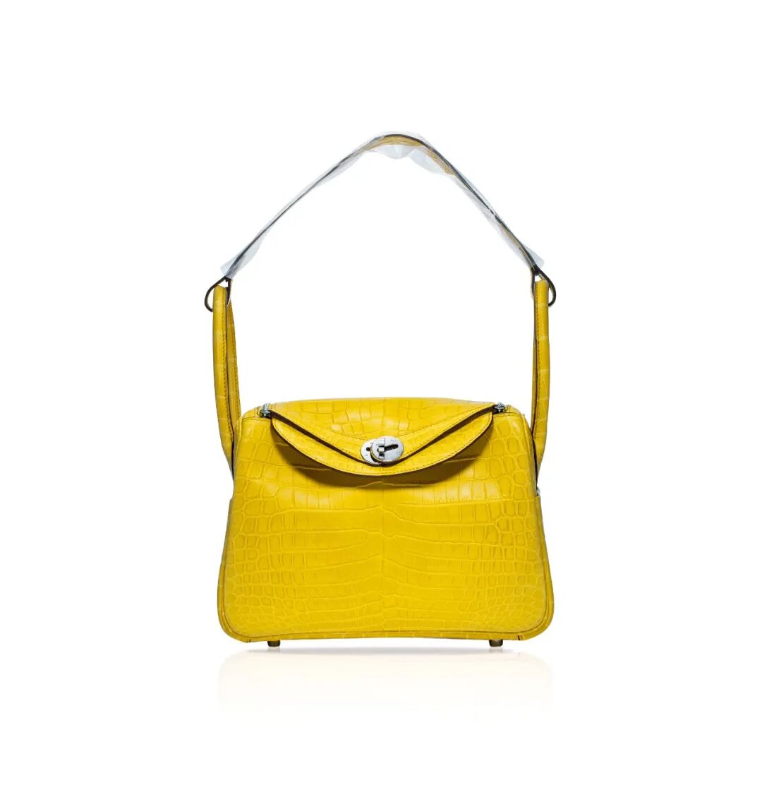 雾面金盏花黄色尼罗鳄鱼皮 26 公分 LINDY 包附银色金属配件
