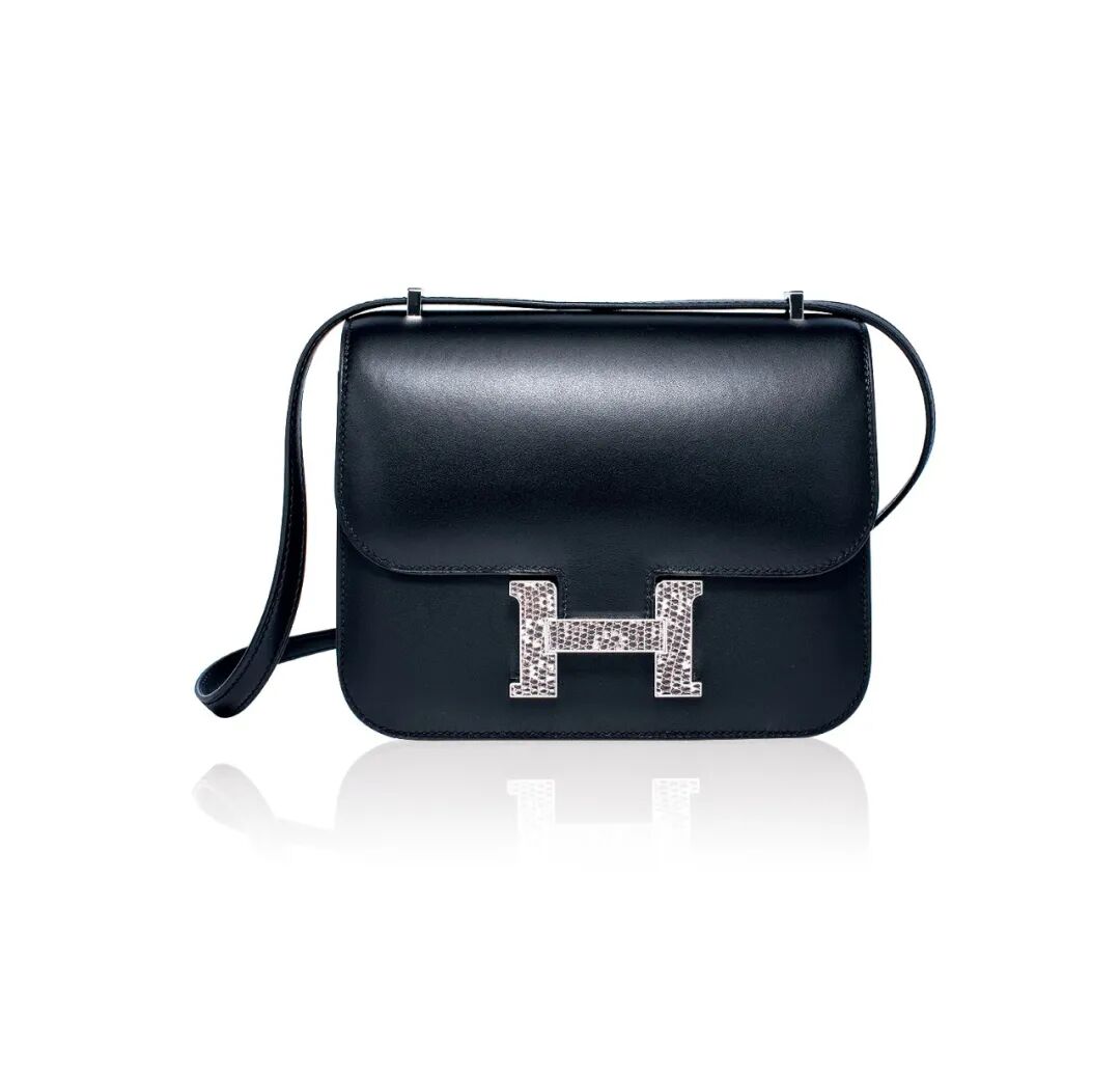 限量版黑色 VEAU MONSIEUR 牛皮 19 公分 CONSTANCE 包附蜥蜴皮及银色金属配件