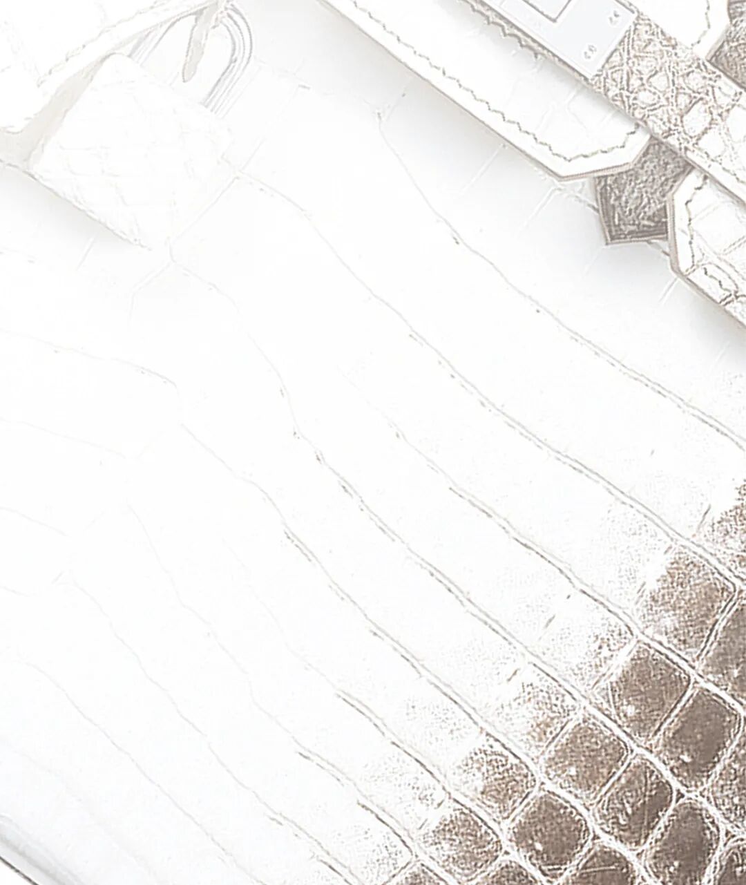 罕见雾面白色喜马拉雅尼罗鳄鱼皮 25 公分柏金包附银色金属配件