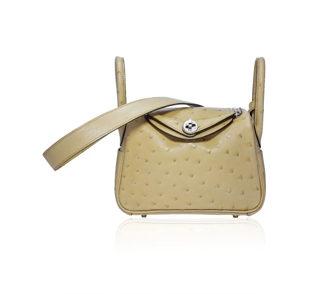 鸵鸟皮是爱马仕最轻的稀有皮革之一,主要来源自南非和澳大利亚。鸵鸟皮轻柔耐用,颜色丰富。随着时间的流逝,皮革仍然能保持良好的形状,潮湿时亦不会变色。