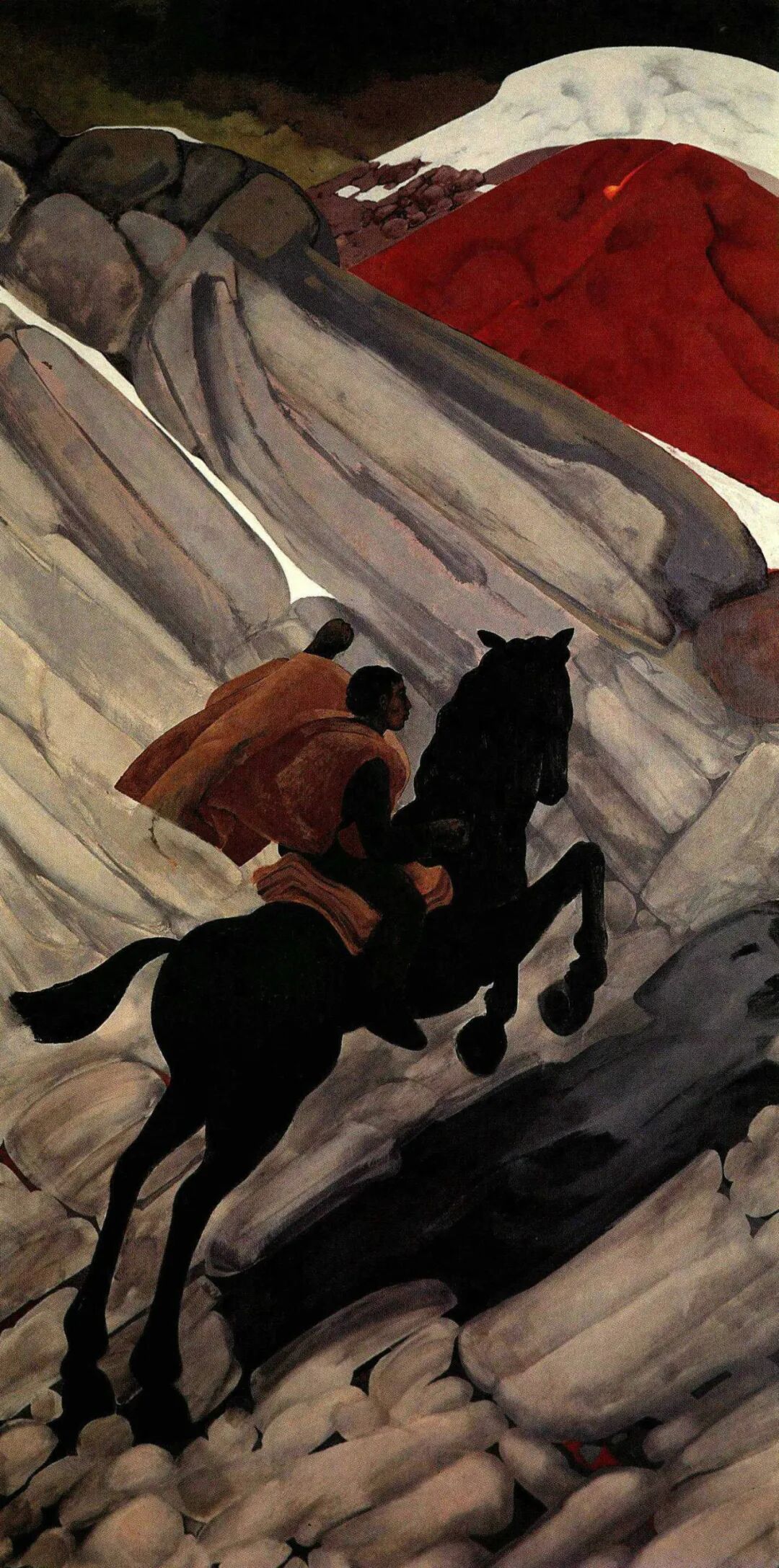 在中国期间,万徒勒里与艺术家齐白石、徐悲鸿、李可染、诗人艾青等人建立了深厚友谊。他还在中央美术学院任教,将新鲜的艺术理念带给中国学生。同时,他的艺术创作也受到了中国传统艺术的影响,吸收了中国水墨画的技艺,比如《狂怒之秋》《庐山》《北京的庭院》等画作,都吸收了中国传统画技。其中,《庐山》受到了艺术挚友齐白石先生的影响,在画面中描绘的是迪莉娅和帕斯从中国南部住所窗户向外眺望时所见的美景。通过万徒勒里的作品,我们可以看到中国对其艺术创作的影响并感受到他对中国人民的深厚情谊。