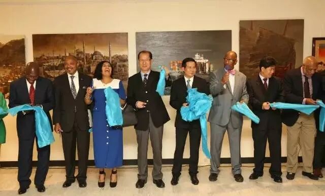 “海上丝绸之路——冯少协油画展”在美国纽约联合国总部秘书长大楼开幕。