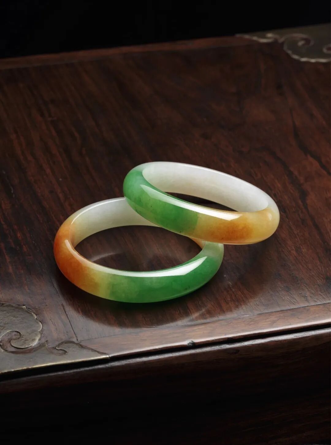 天然三彩翡翠手镯一对