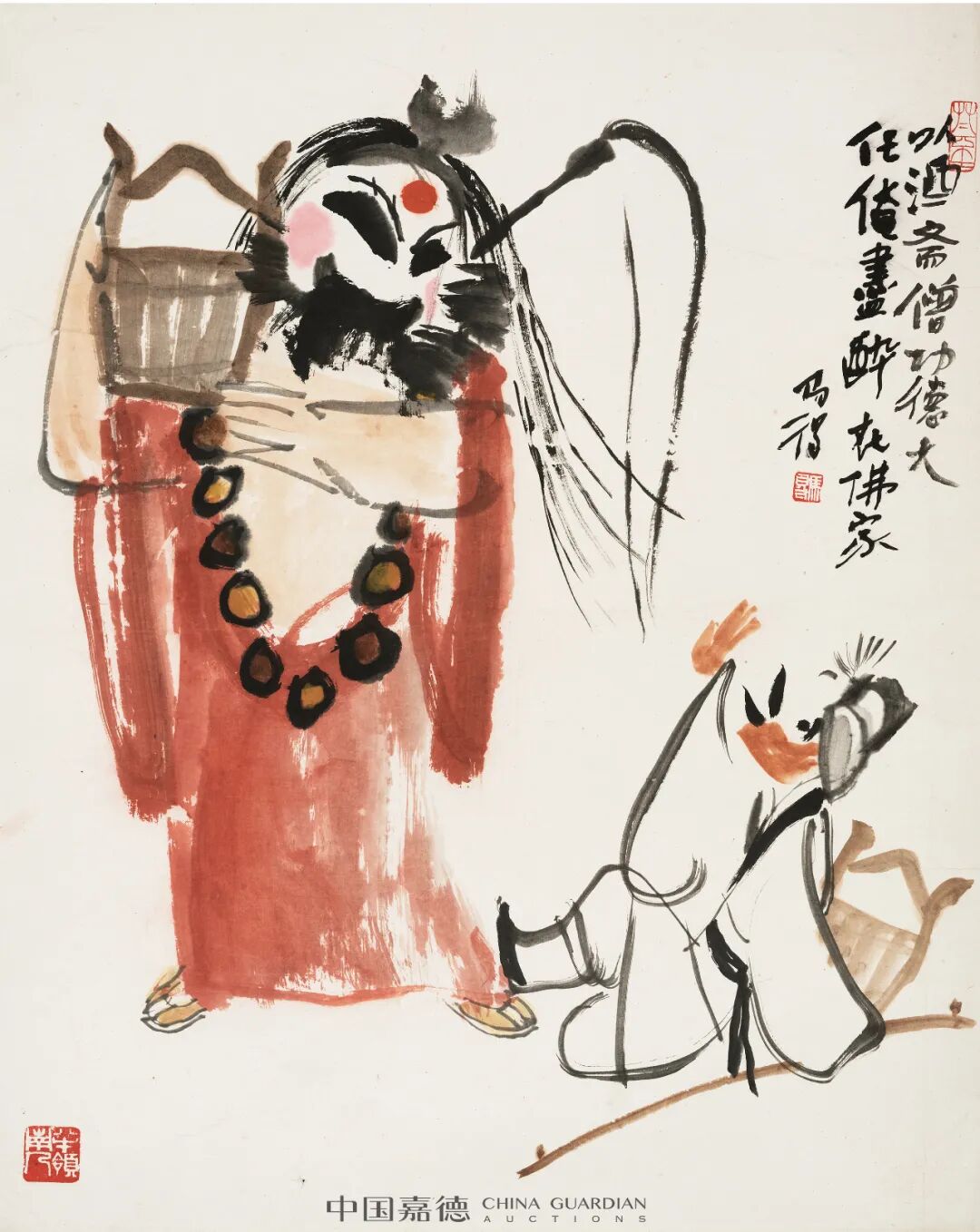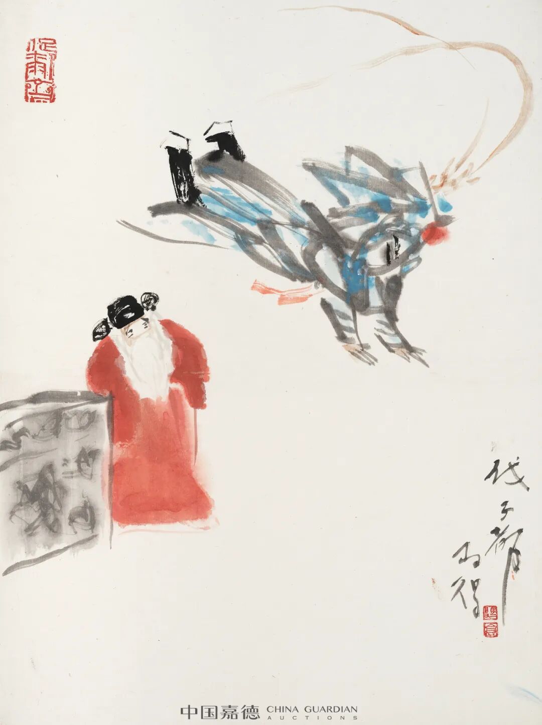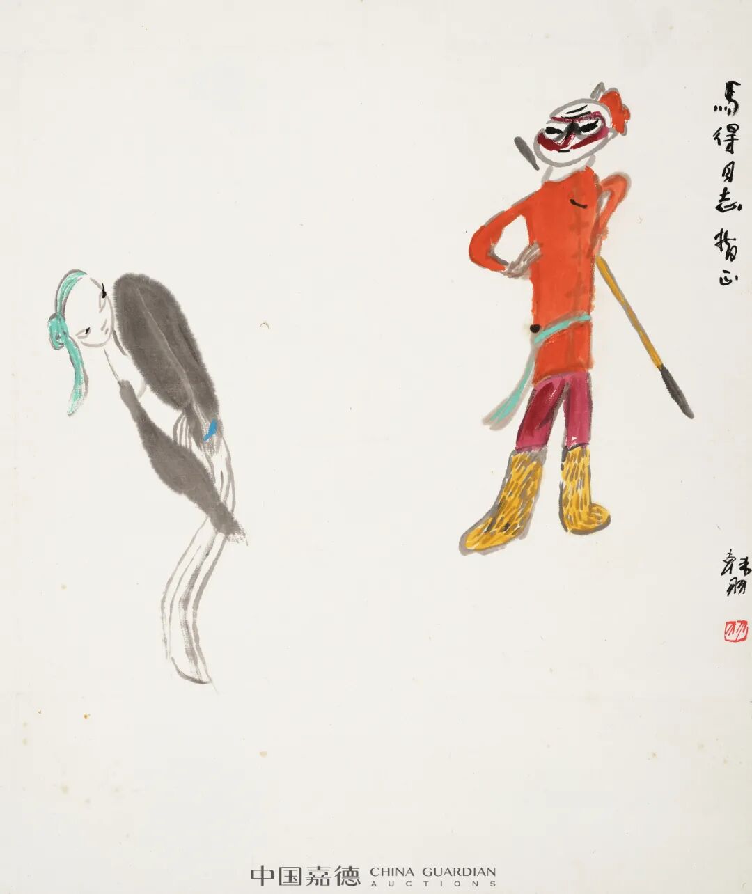 “笔底漫妙”专题中集合了高马得、韩羽、蔡志忠、丁聪、华君武等一批名家之作上拍。他们或以漫画形式绘社会现实,人间世事,或以漫画笔意绘历史故事、戏曲唱段。画面虽小但透辟世事,寥寥几笔但横墨竖彩。在高马得的笔下,漫画的夸张变形与水墨写意巧妙融合,戏剧情节里那些矛盾冲突、悲欢喜乐,经画家的巧手由此便有条不紊地转放在水墨之中。蔡志忠、丁聪、华君武等的艺术家的漫画作品则是更加通俗幽默,在雅俗共赏的图文中不失深刻思考。