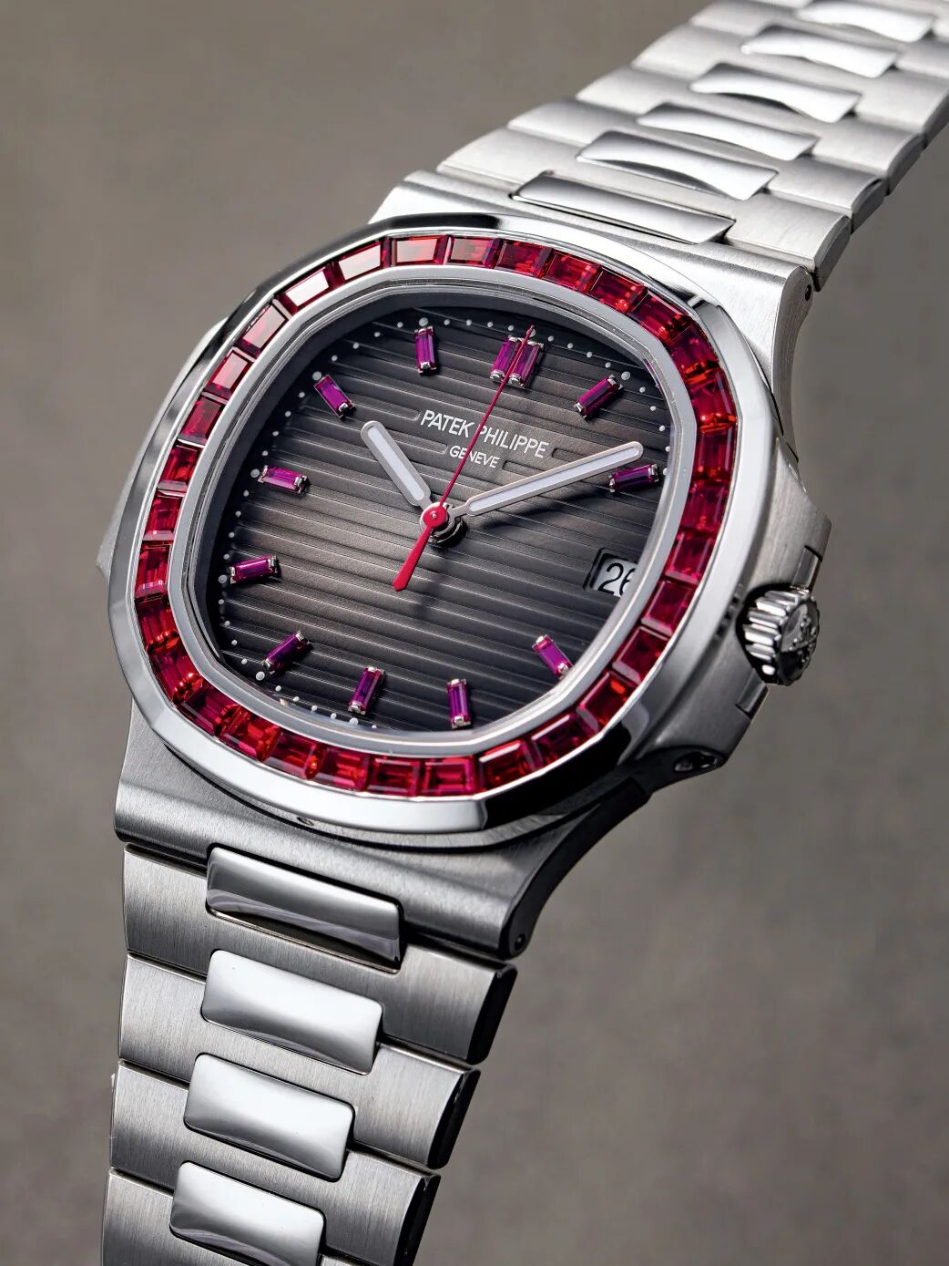 首登拍场的百达翡丽“Nautilus” 5711/112P 铂金镶红宝石圆八角形自动链带腕表以港币 840 万成交