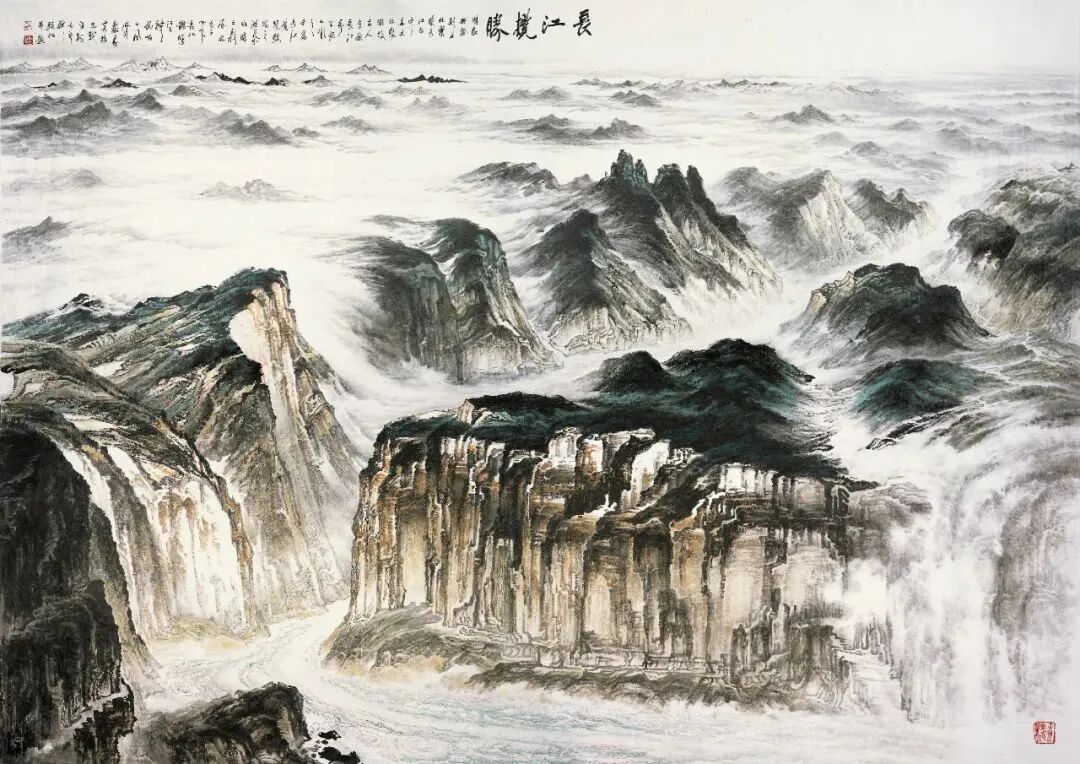 一位潮汕前辈画家打趣道:“潮州人不仅依水而居,且从早到晚食粥、饮茶,这些活动都要与水打交道,自然对水墨的兴趣和理解,要比别人厉害啦!”此言虽近于戏谑,然也别有况味。许钦松就是这样一位从潮汕走出来的著名山水画家, 创作的《长江揽胜》气象万千,令人印象深刻。