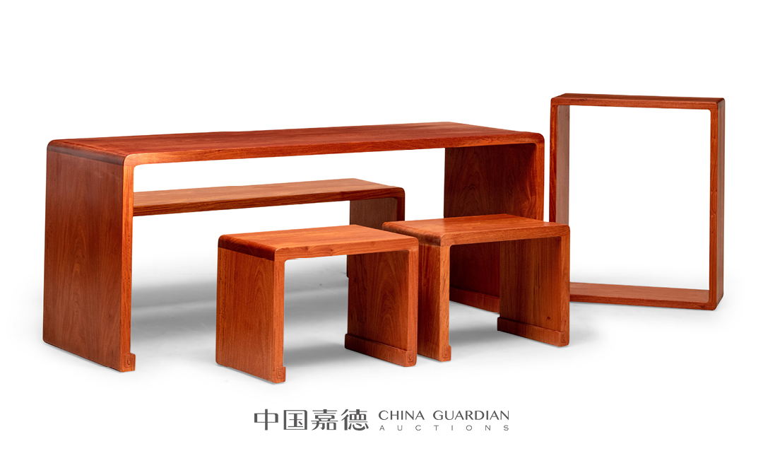 缅甸花梨木制成,设计灵感取自汉制琴桌,融合了现代的生活方式和构成关系。通过中正简约的器型高低错落陈列,加上不同组件之间的细微变化;使其保留了汉制家具的中正气韵,也融合了当代生活的轻松淡雅。古朴高雅,又轻松自然。套桌可左右移动,将茶桌隔为上下两个储物空间,保证桌面整洁,桌面空间可收纳茶杯,桌下空间可收纳茶棚提篮等物件。