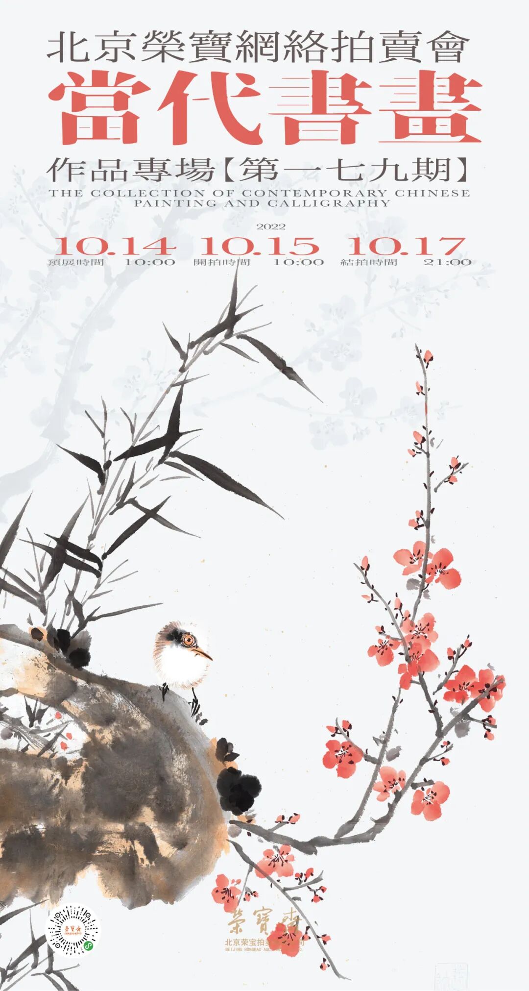 北京荣宝·当代书画作品专场网络拍卖会(第一七九期)将于10月14日10:00-10月15日10:00开启线上预展,并于10月15日10:00开拍,10月17日21:00结拍。