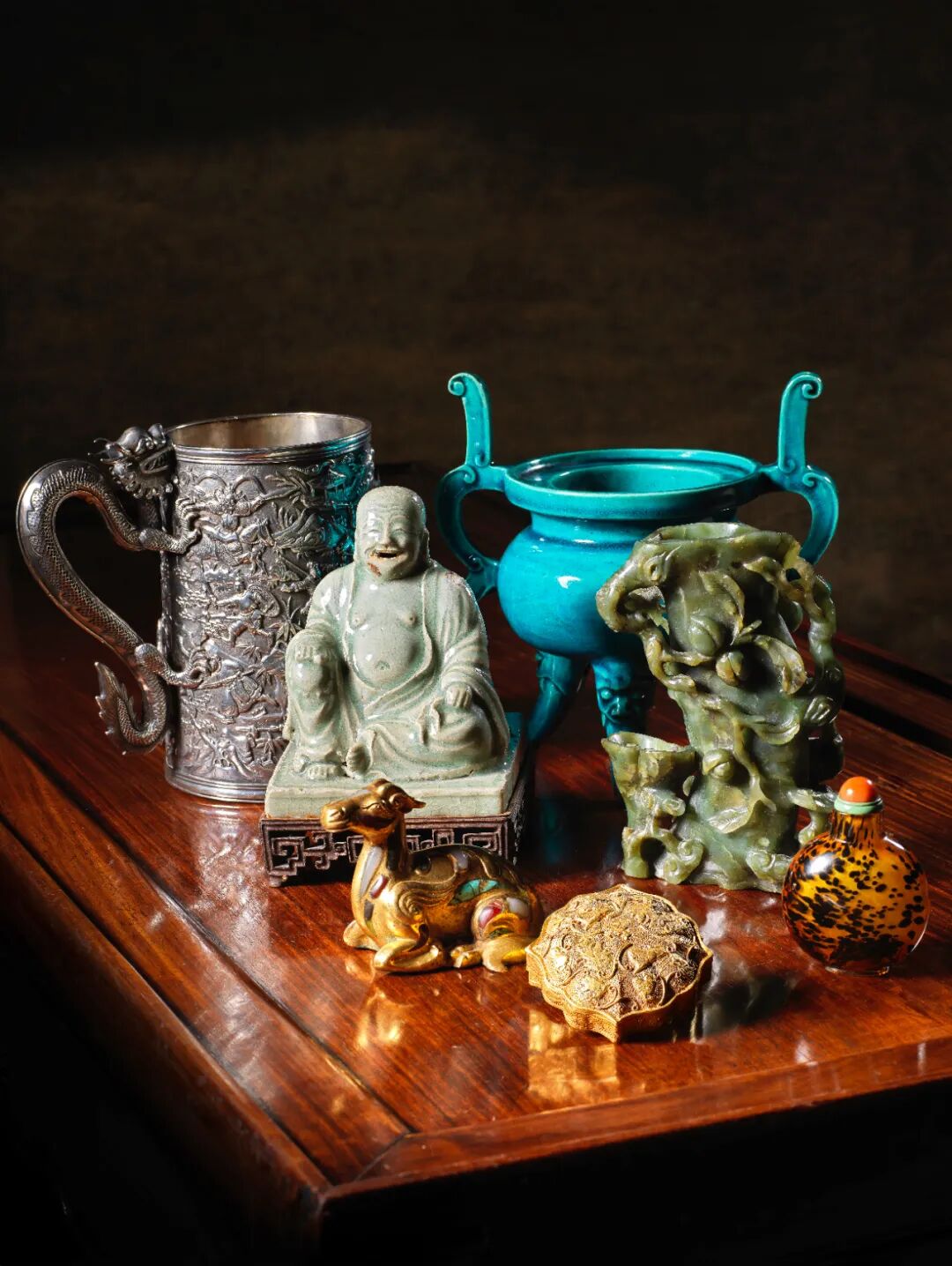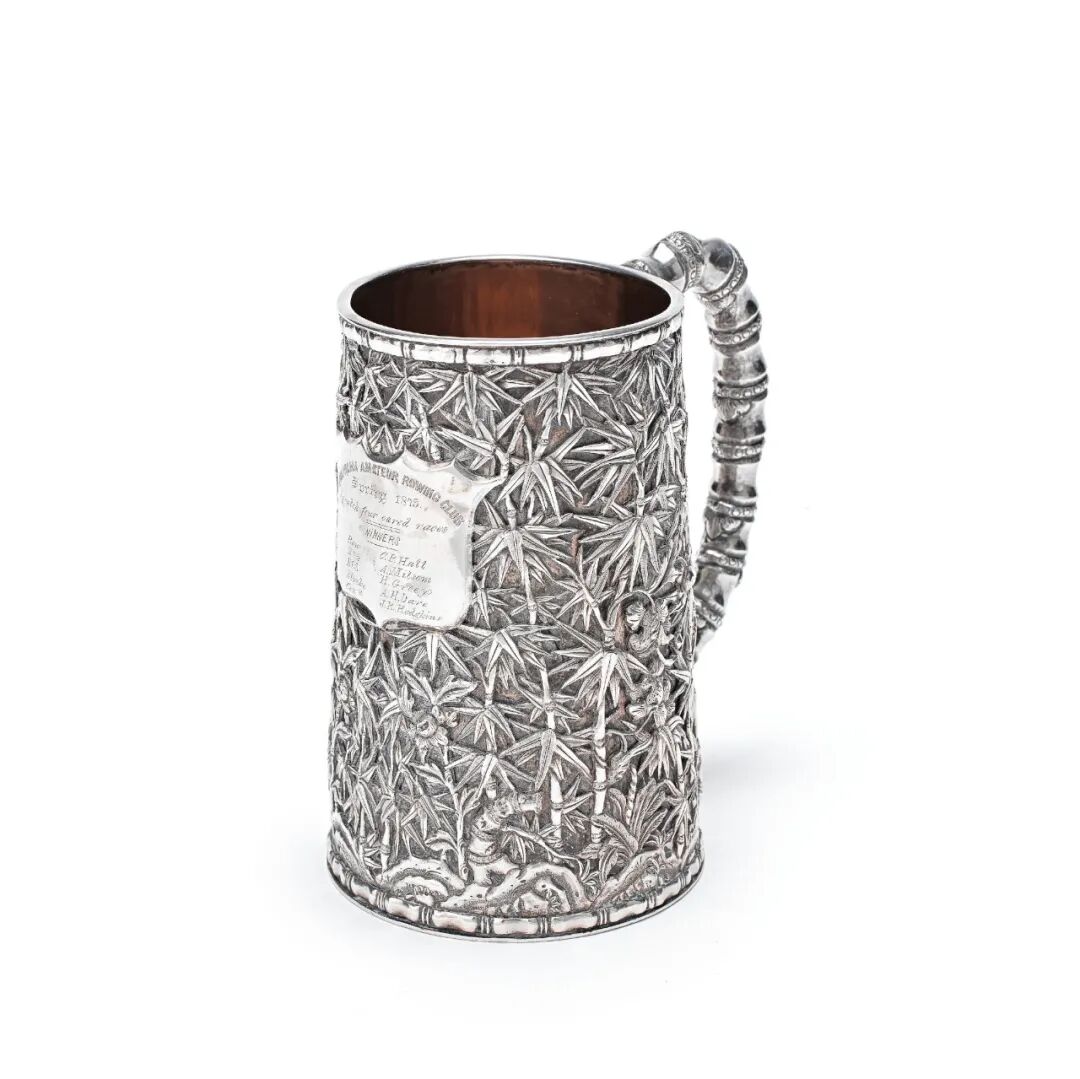英国私人藏家收藏的中国出口银器。从 18 世纪到 20 世纪中叶,中国工匠大多是仿照欧洲的式样制作,但以中国的传统图案进行装饰。起初是居住在广州的外国人使用这些银器,但随着 18 和 19 世纪西方与中国的贸易增长,中国银器在西方打开了更广阔的市场。例如,一件1875 年的纪念银杯,上面刻有 LC, Leeching of Canton, Hong Kong and Shanghai,还带有一件横滨业余赛艇俱乐部的纪念徽章。