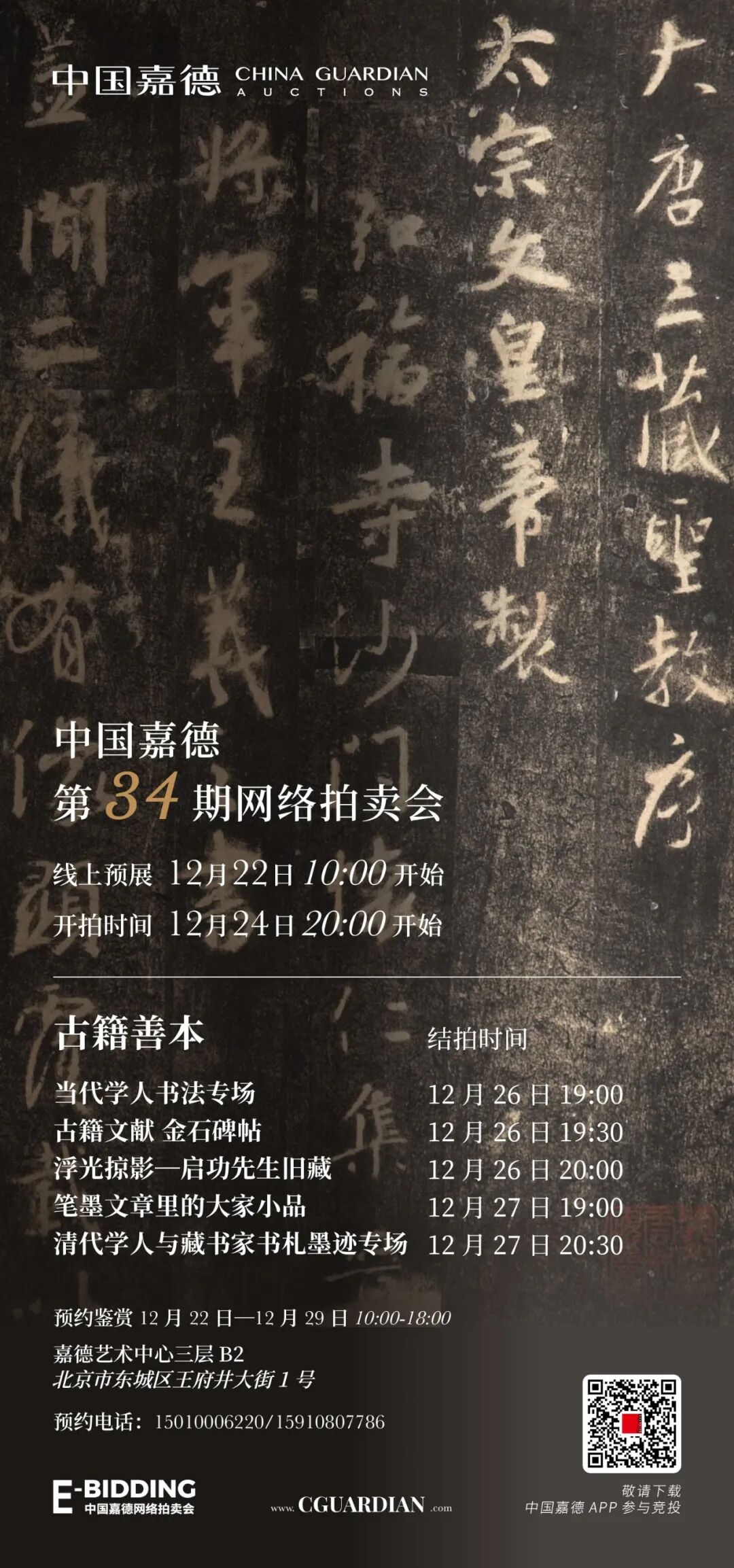 ●E-BIDDING提供预约鉴赏服务,敬请关注“中国嘉德网拍”服务号预约。鉴赏地点:嘉德艺术中心三层、B2层。