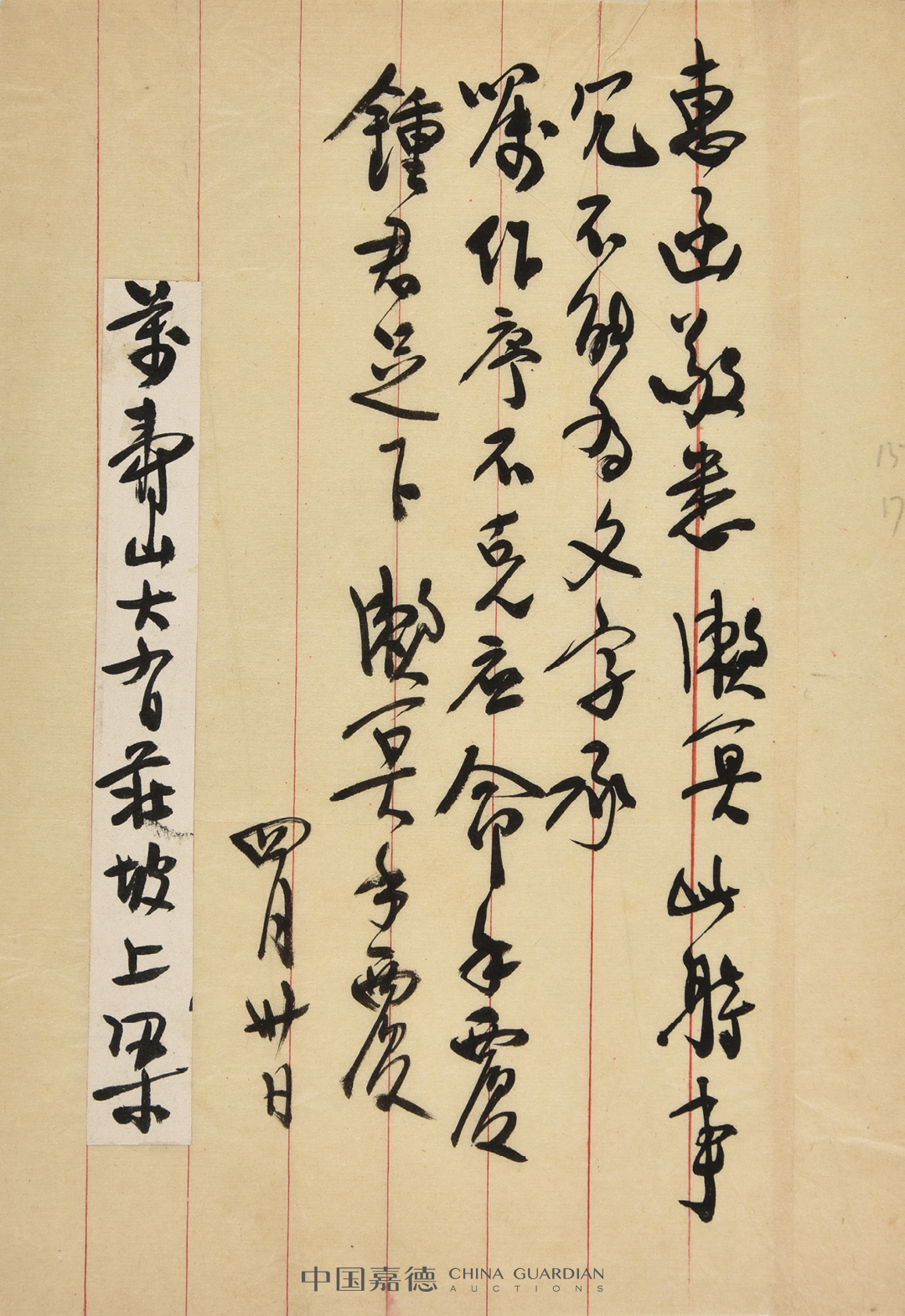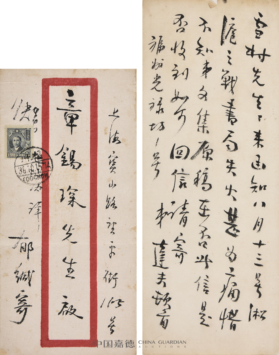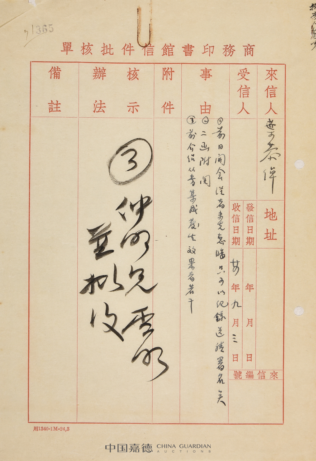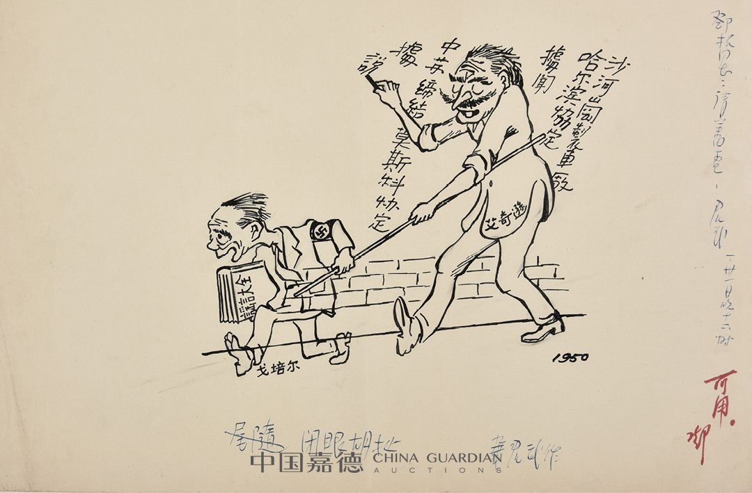 “笔墨文章里的大家小品”专场选取邹鲁致谭延闿信札,叶恭绰、顾实、蒋彝、洪深等学者与商务印书馆及中华书局往来信函,董作宾精摹甲骨卜辞,郁达夫与章锡琛书,龙榆生、陈兼与、冒效鲁、林同济等词家书信诗稿,华君武、丁聪漫画手稿,张伯英、林散之、陈佩秋、欧阳中石等大家翰墨,共计48件,方寸之间尽显笔墨情趣。