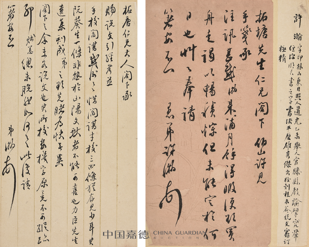 “清代学人与藏书家书札墨迹”专场囊括朴学大师许瀚、书家大宗包世臣、清代惟一旗人状元崇琦、甲骨文之父王懿荣、皕宋楼主人陆心源、会稽名宿李慈铭、晚清封疆大吏晏端书、“辫帅”张勋、名冠东瀛的清四大家之一梁同书以及汪喜孙、朱琦、孔宪彝、梁鼎芬、谭献、盛景璿、徐琪、胡铁梅、王芑孙、费念慈等通经博史嗜金石之士及南北藏书家书信、楹联、字画46件。及其物,读其书,观其墨迹,犹如与前贤对谈。