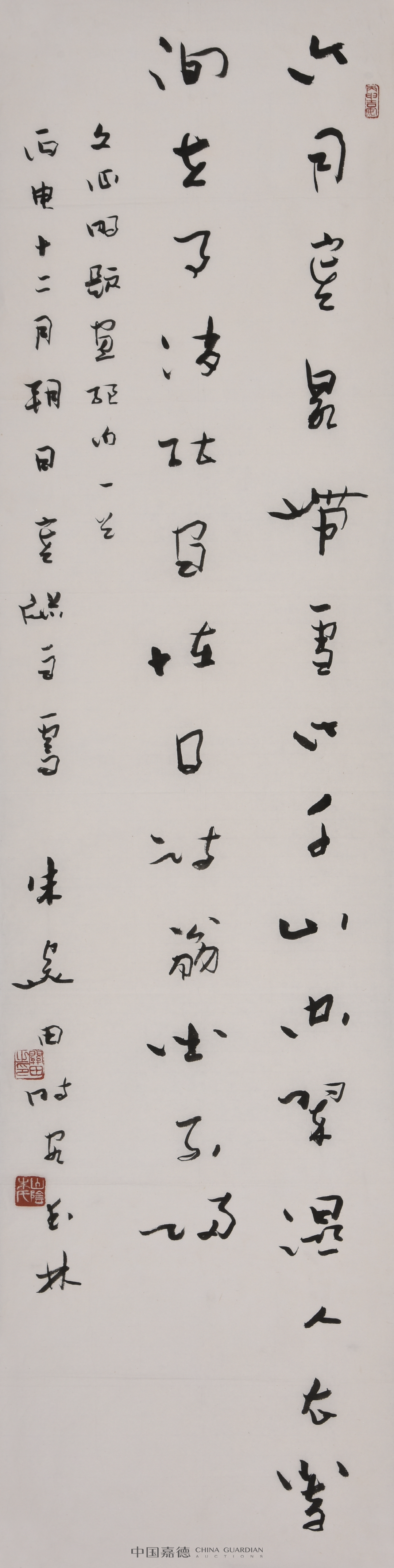 “当代学人书法专场”为本季首次推出,包含“摇滚唱得最好的书法家”鲁大东《纸老虎日历2022》原作,同一藏家藏朱关田、王冬龄、曹宝麟、邱振中、白谦慎、鲍贤伦、朱培尔、张羽翔、陈忠康等十二位当代名家书法作品,以及梁树年、高冠华、邵宇石虎等画作,共26件,可谓琳琅满目。