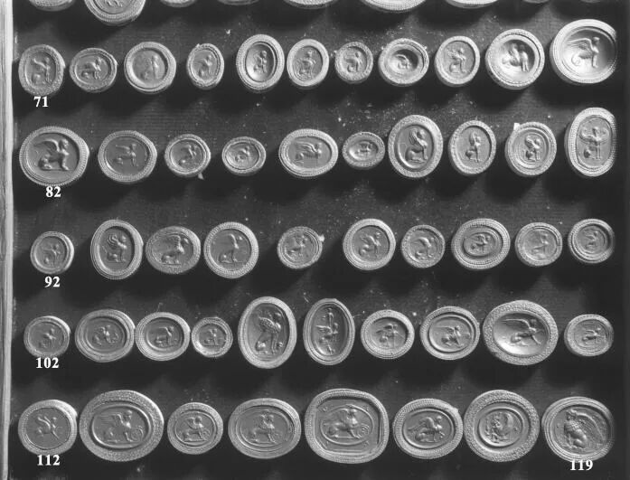 虽然对大部分传统的西方收藏家来说,“微雕宝石”主要指的是希腊罗马的阴刻或浮雕宝石戒面,以及圣甲虫或似圣甲虫(Scaraboid)等,但现今的学者也习惯于将西亚那些最古老的滚印(史前一种圆柱形的印章)归入其列。由此将“微雕宝石”制作和使用的年代上溯至五千多年前。而在欧洲,地中海米诺文明、迈锡尼文明使用的石质小印章也可以追溯到公元前两千多年。这种细小的珍宝荟萃了人类对自然造物之美和巧匠技法之精的至高追求,在昔日曾承载各种重要的社会功用,今日又成为了收藏家追逐的目标。