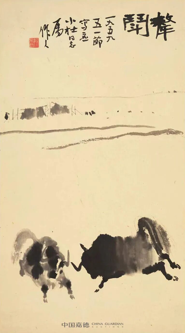 题识:獒斗。一九五九五一节,写应小杜同志属。作人。