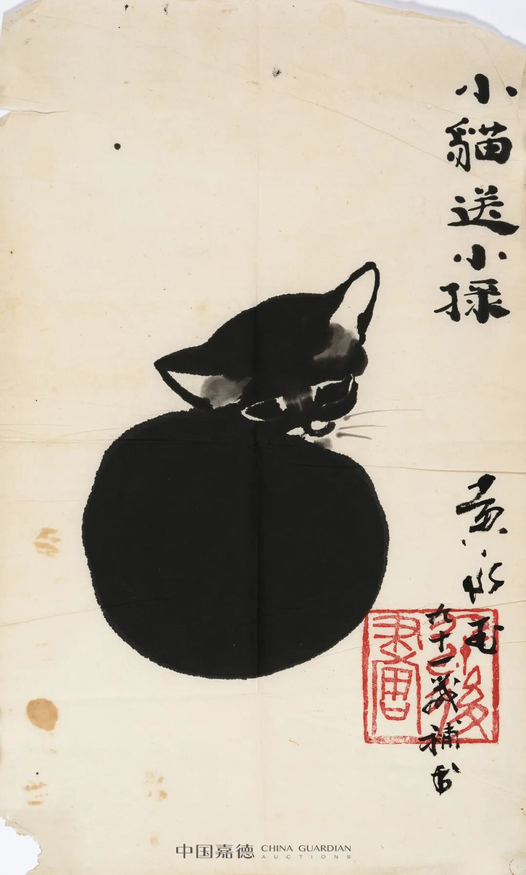 题识:小猫送小绿。黄永玉九十一岁补书。