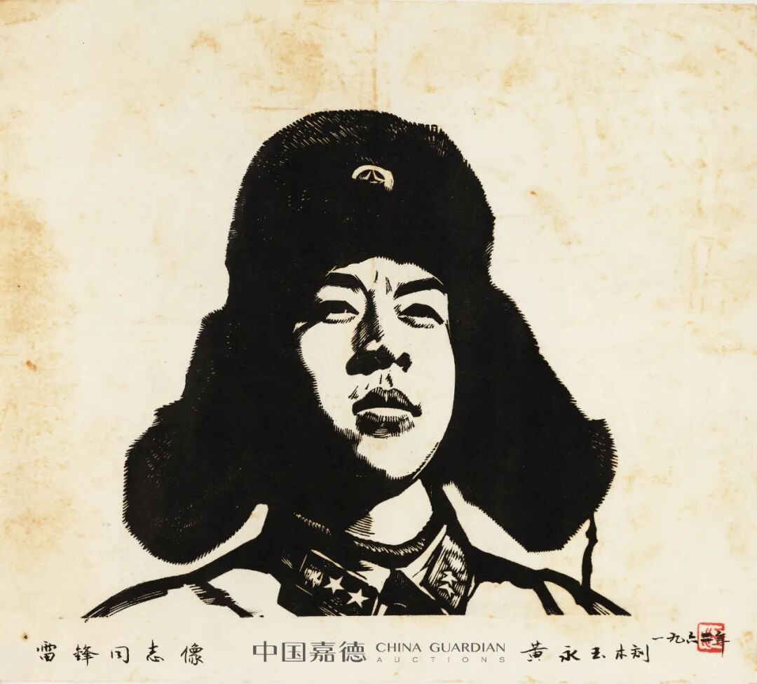 题识:雷锋同志像。黄永玉木刻,一九六二年。