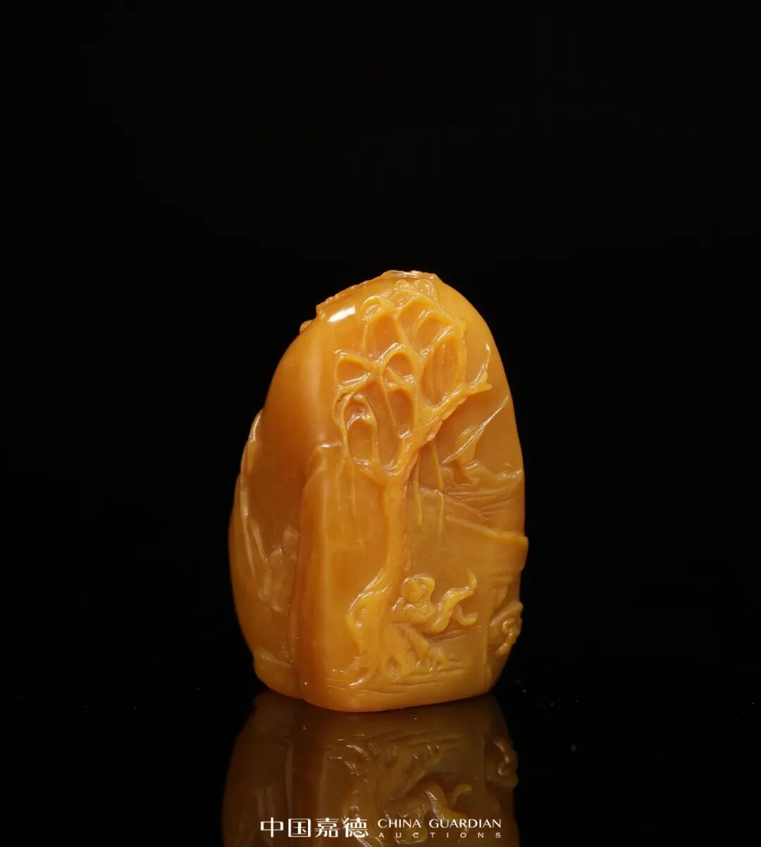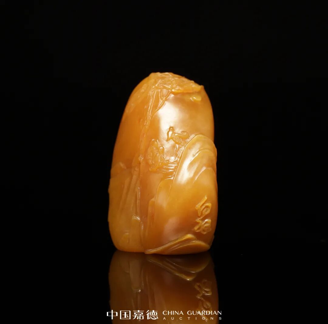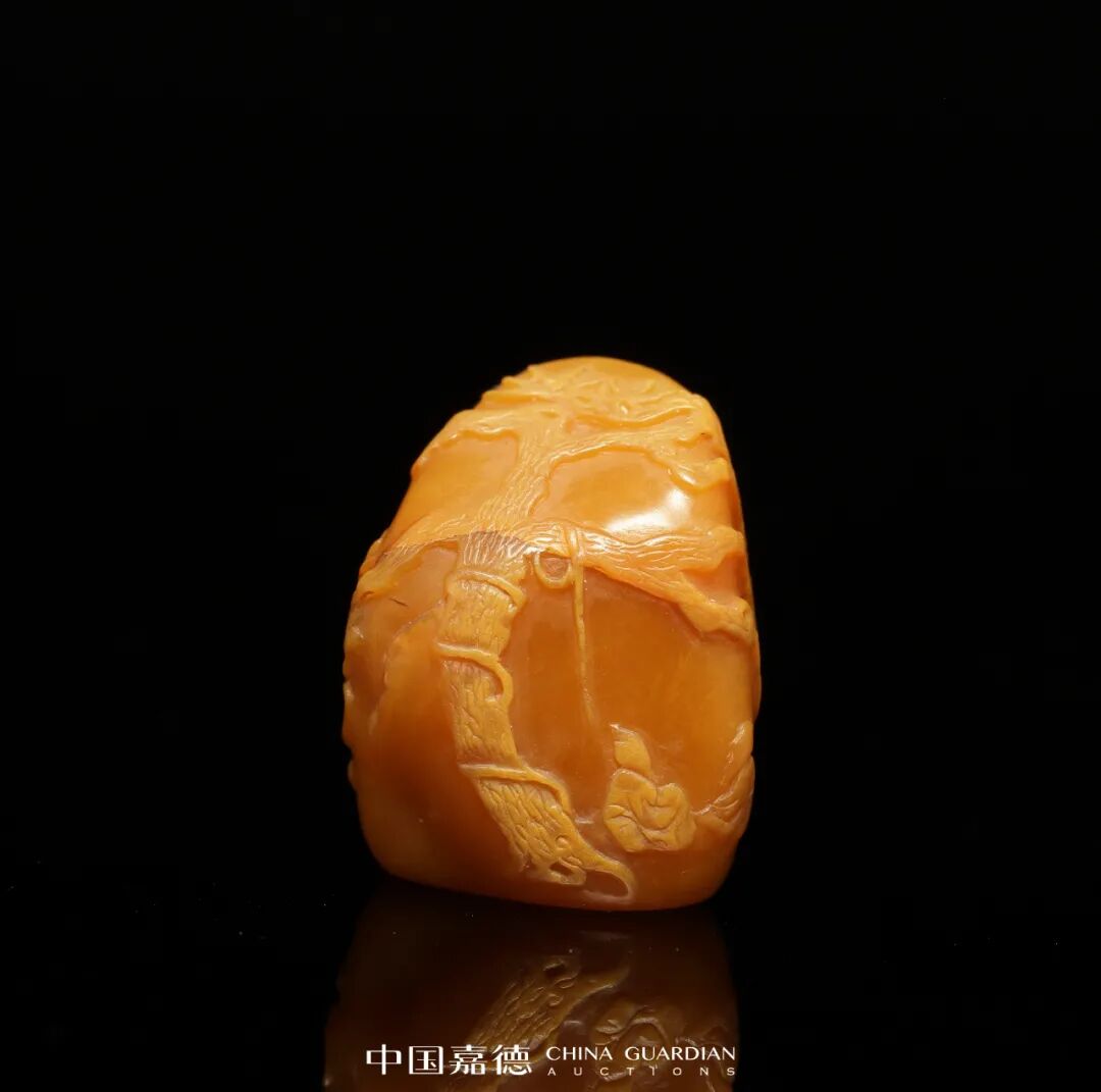 寿山田黄石薄意摆件