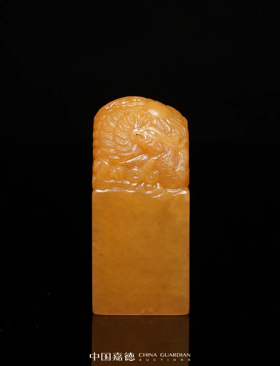 寿山银裹金田黄石浮雕螭龙献财随形章