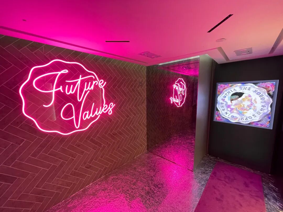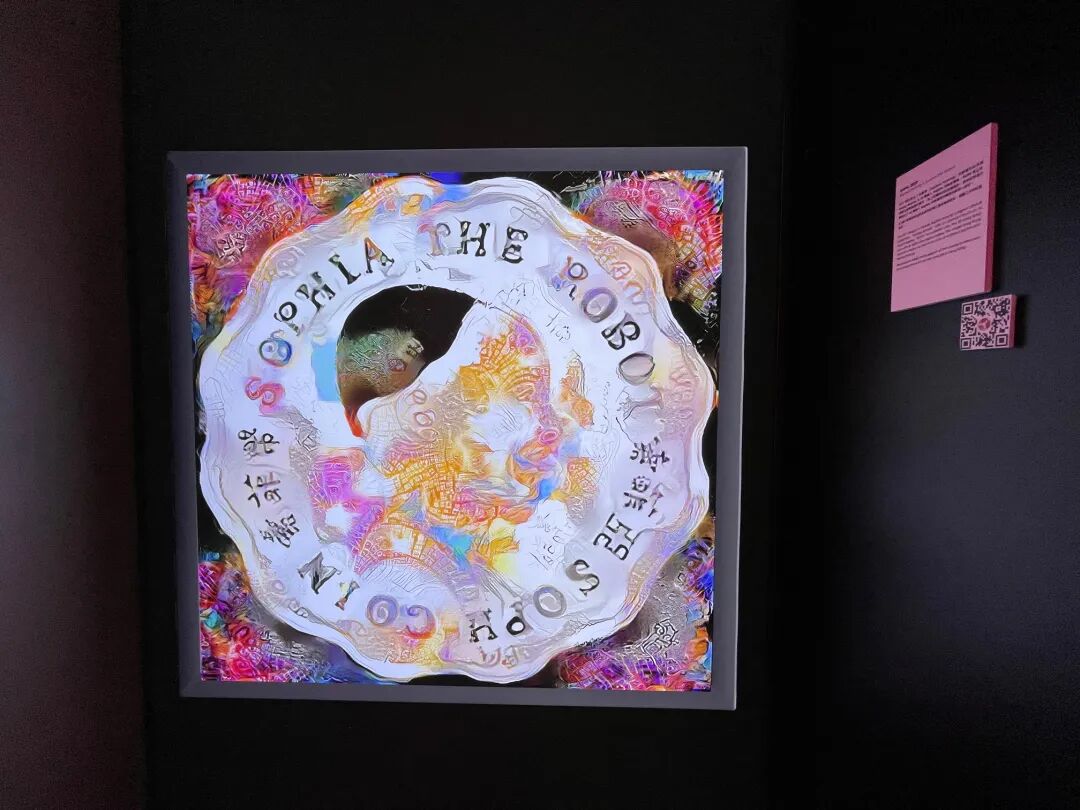 Beauty」,画面以香港两元硬币为设计蓝本,利用其独特的波浪边设计。何慧恩创作《$OPH》时,还需要艺术家索非亚参与制作,而索非亚与其他艺术家的最大分别在于「她」是机械人,那么人类与机械人究竟如何一起创作艺术呢?