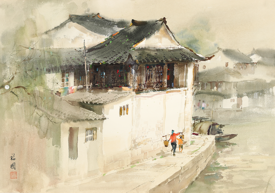 施福国,1935年生于江苏盛泽,1949年定居上海。高级美术师,中国美术家协会会员,曾任上海水彩画研究会常务理事。五十年代师从颜文梁先生,擅长油画、水彩画,作品典雅、秀丽、立意新颖,有鲜明的个人风格。