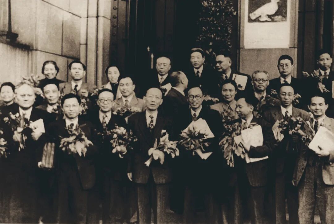 1949年,徐悲鸿(后排左五)受周恩来委派,