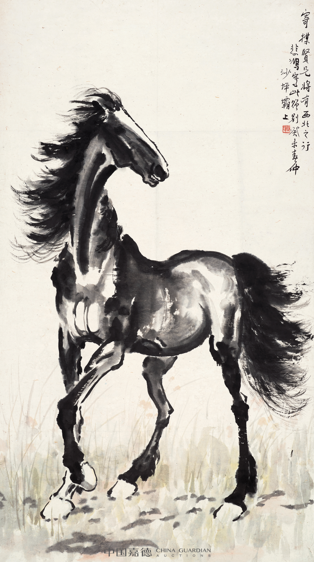 综合来看徐悲鸿的艺术,存世量最多,也是其艺术基石所在的是素描:准确、简练、生动,又具有一种东方情调,且有着延续至今的影响。历史、神话题材虽存世量不多,但它们集中反映了徐悲鸿的思想和内心世界,是其艺术理想所在。而若论从徐氏初涉艺坛开始便贯穿其艺术生涯的创作,当属动物画。动物画,既是徐悲鸿走上艺术道路的启蒙之师,也是他各个时期抒发个人情怀的主要方式,更是其成熟个人风格的符号性标志。