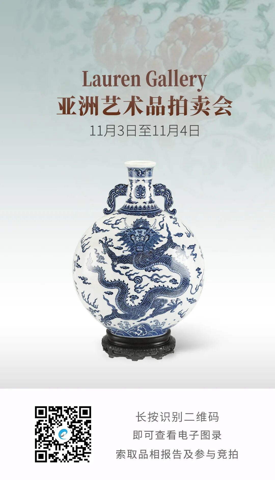 Lauren Gallery 是一家位于美国佐治亚州的拍卖行,由业内资深人士创建,主营亚洲和欧洲古董艺术品。11月3日至4日,Lauren Gallery 将呈现一连两场的『秋季古董艺术品拍卖会』,联拍在线全程直播,并提供实时同步竞拍技术和服务支持。