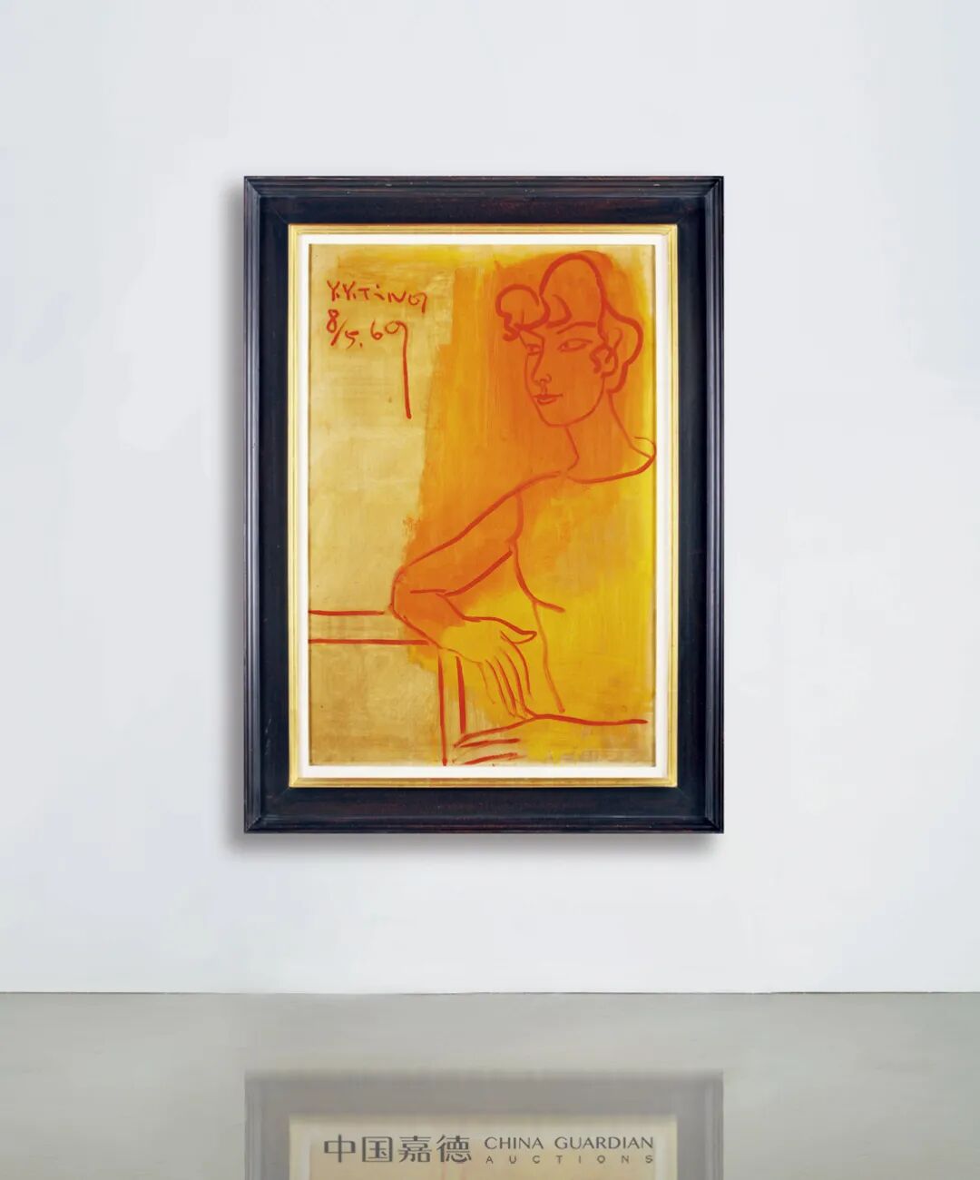 然丁衍庸主要成就还是在于成功的东西融合,他从八大山人(朱耷)与石涛的文人写意绘画,以至后期对中国古代玉玺、原始文化的探索中得到的心得,巧妙融合西方现代主义艺术的精华,发展出具有浓厚东方文人审美趣味,却更加大胆创新的“丁式风格”。丁衍庸于海内外展出经历十分丰富,曾于日本东京、京都、大坂等重要美术馆展出,也曾远赴欧美、澳洲等地举办画展,不仅是二十世纪初期留学日本的代表,也为早期在国际艺坛上大放光彩,备受尊崇的华人艺术家。1925年,丁衍庸学成归国,任教之馀也专注于自身创作风格的探寻,爰此,画风逐渐自写实转向精简的“线”性风格,以简笔线条构筑创作元素,于人物画中更是充份展现此特色。本次创作于1969年的《橘色仕女》,为其共冶西方色彩与东方线性表现的杰作。