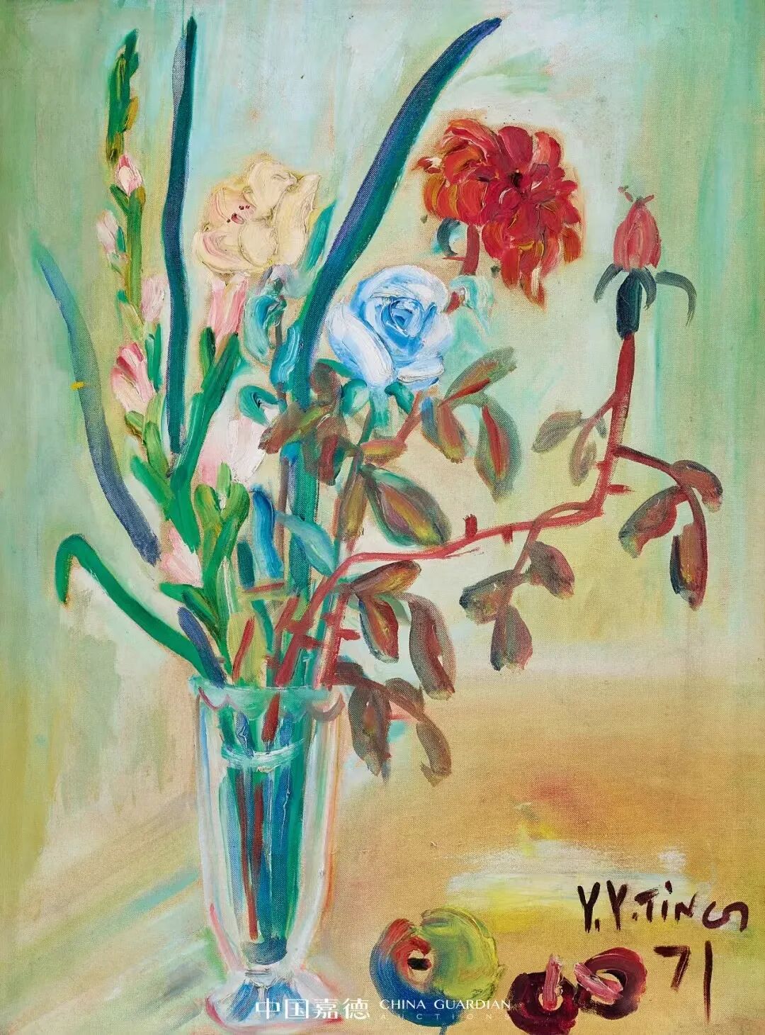 丁衍庸《瓶花》1971年布面油画 61×46 cm.中国嘉德二十世纪艺术夜场2022年6月28日 Lot 1704