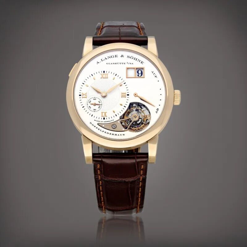 百达翡丽 型号 5207P-001 铂金三问万年历陀飞轮腕表估价:700,000 - 1,000,000 瑞士法郎朗格(Lange & Sohne)腕表近年人气不断上升,令这个来自德国的品牌逐渐成为瑞士表以外的高级时计代名词。其修饰和雕刻工艺均须符合严格的手工和美学标准,难怪人们经常把朗格与百达翡丽相提并论,甚至连独立制表大师菲利普杜夫(Philippe Dufour)和罗杰史密斯(Roger Smith)都会佩戴他们的腕表。![]()