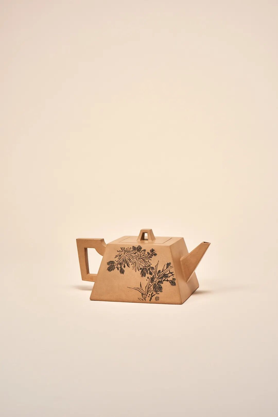 紫砂器自明代晚期兴起以来,大多于壶底刻写制器姓名款或年号干支款。进入清代以后,紫砂器年号则不再出现,改以干支纪年。康熙十六年,出于维护帝王权威的考虑,浮梁知县发布了年款禁令。自此绝大多数康熙民窑停止了书写年款而改书其他类型的款识。禁令虽然限制了题写年号款,却激发了民窑的款识创新能力,使得康熙款识空前丰富,寄托款、堂名款、吉语款、图记款、花押款等等百花齐放。清初直至乾隆,民窑器皆有以秋叶为款者,而紫砂香叶款十分罕见,独具特色。