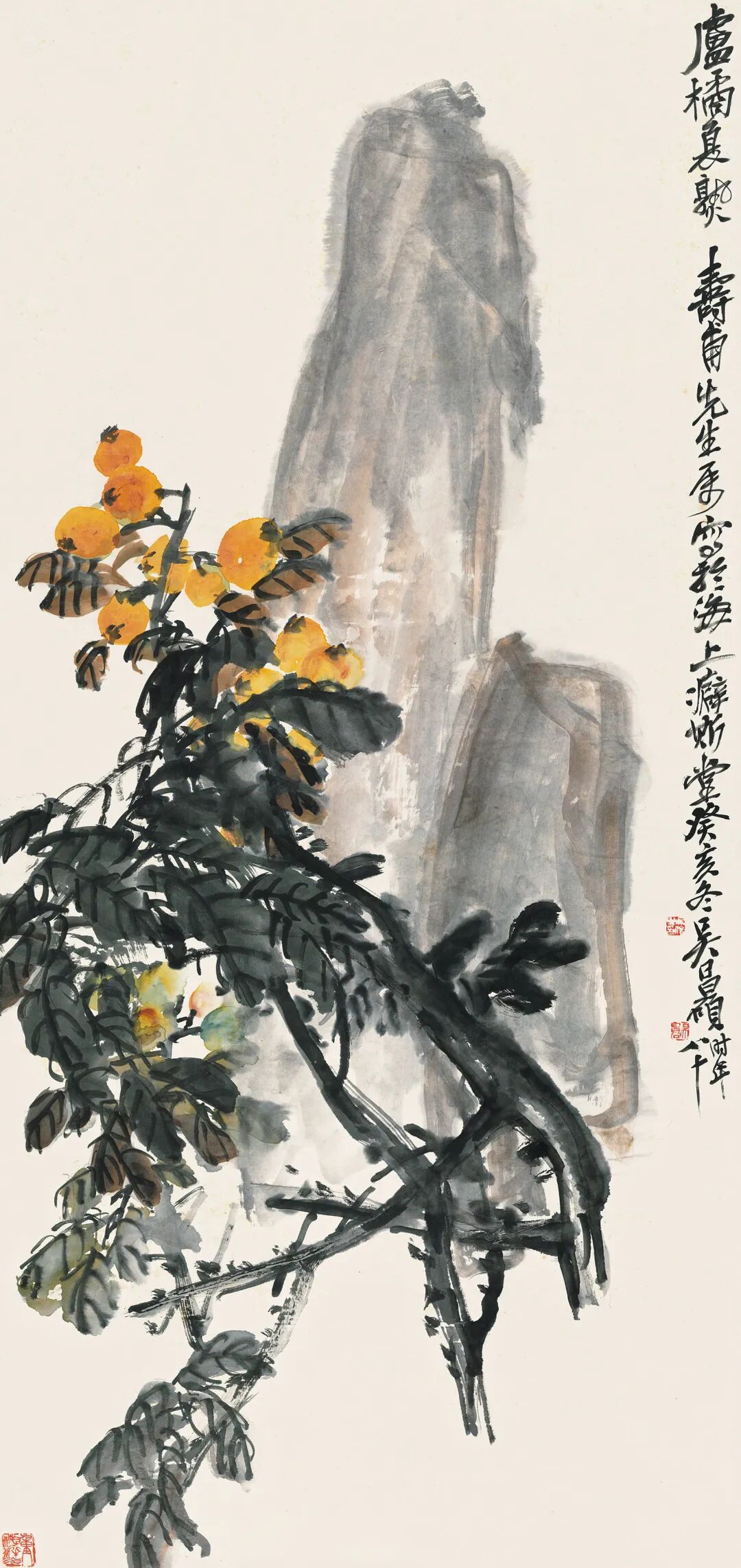 款识:芦橘夏熟。寿甫先生属,写于海上癖斯堂。癸亥冬,吴昌硕,时年八十。