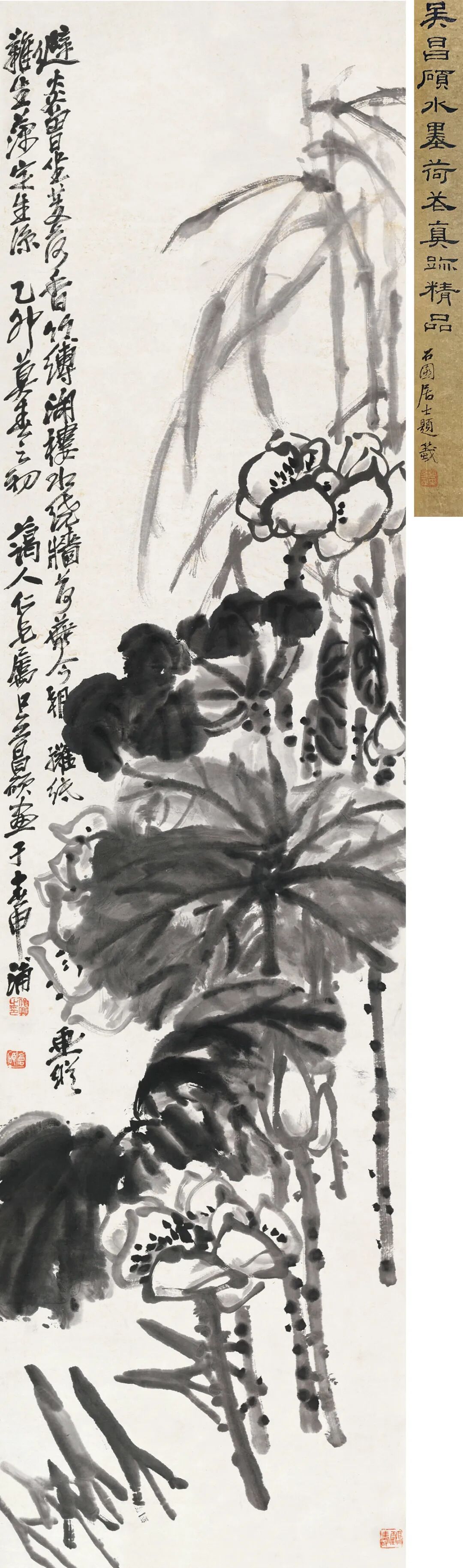 题签:吴昌硕水墨荷花真迹精品。石园居士题签。钤印:张克和印。