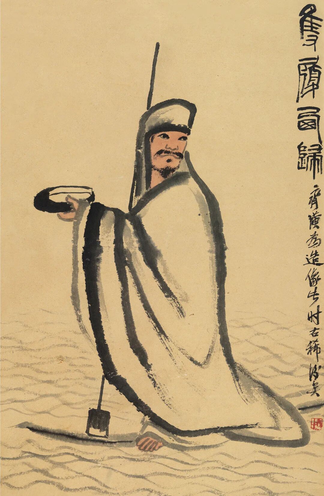 人物画是齐白石艺术创作的起点,齐白石的人物画,在总体风格气质上面仍然属于古风格调,还带有浓重的民俗色彩,其人物造型与线条笔墨,偶有陈老莲、钱慧安、任伯年的风气,但更多近乎金农、黄慎、改琦、费丹旭轨辙。虽然40岁后他自称绝少画人物,但是在应人之请的情况下,其实他并没有完全放弃人物画的创作。综而观之,人物画也构成了齐白石艺术创作的一个时期、一种面貌,甚至也可以说伴随了他潜心求索的一生。