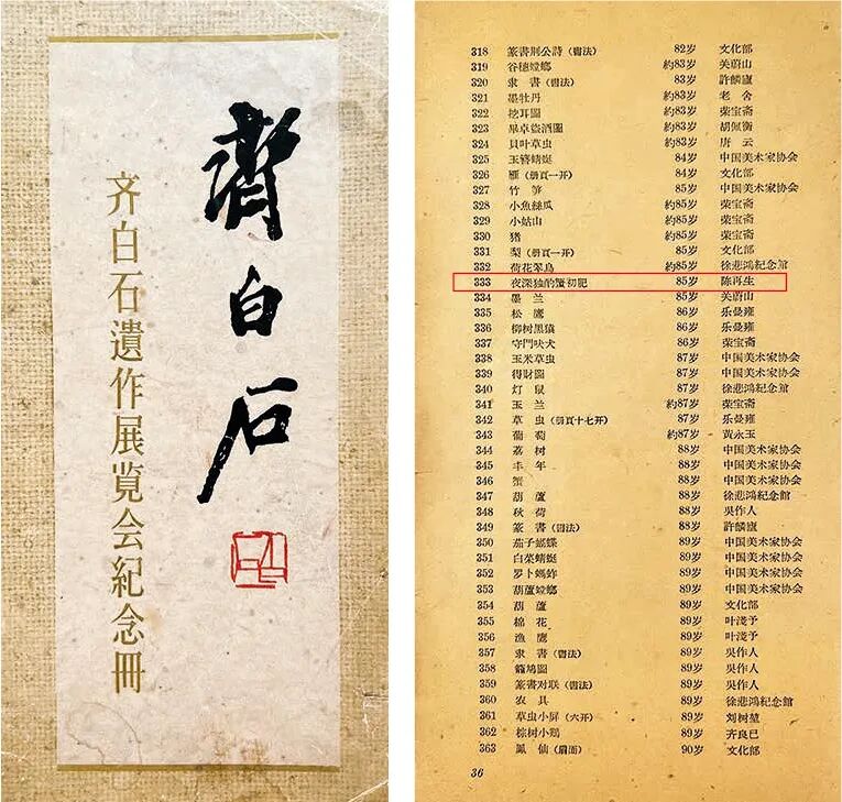 1.《齐白石遗作展览会纪念册》,第333号,中国美术家协会,1957年。