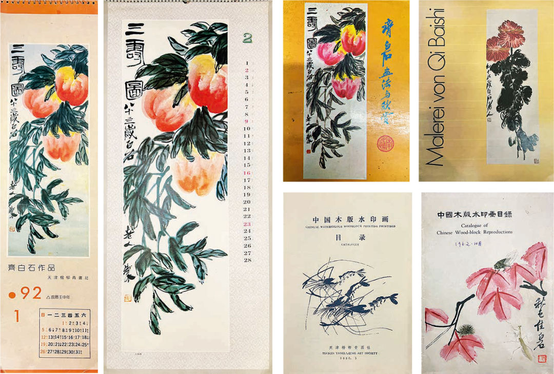2.《齐白石三寿图》,天津杨柳青画社木版水印。