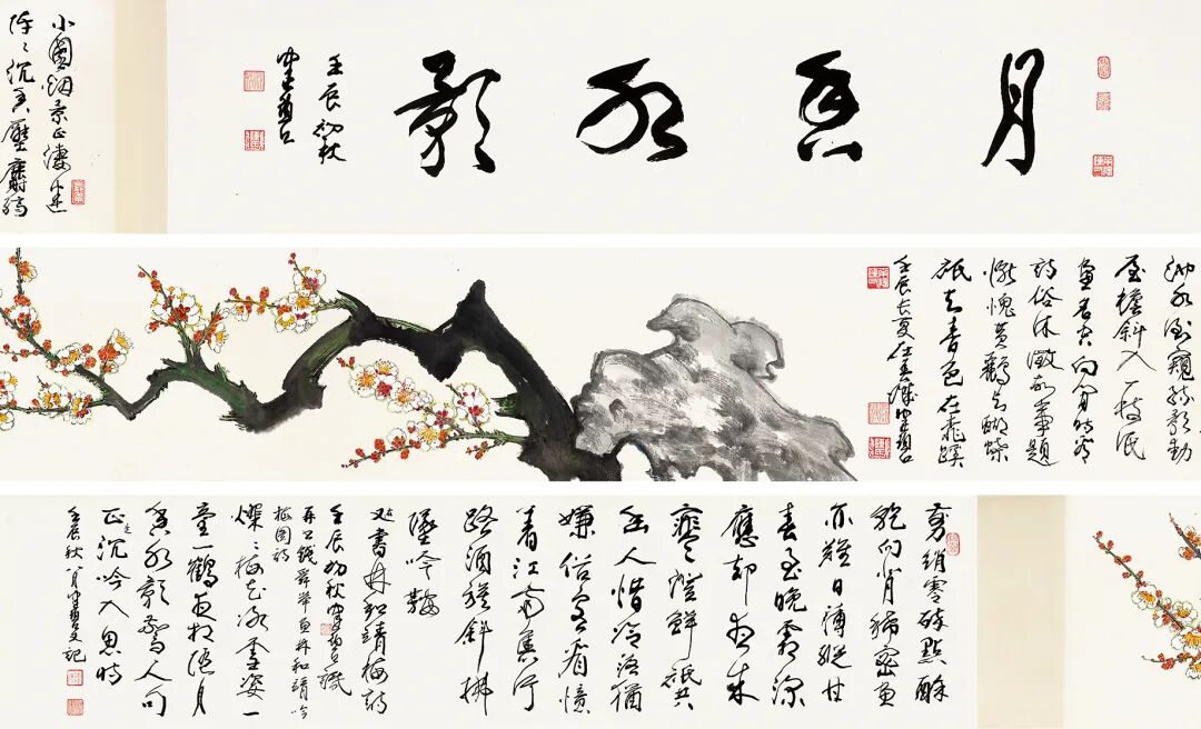 尾跋:剪绡零碎点酥乾,向背稀密画亦难。日薄从甘春至晚,霜深应却夜来寒。澄鲜祇共幽人惜,冷落犹嫌俗客看。忆着江南旧行路,酒旗斜拂堕吟鞍。右书林和靖梅诗,壬辰初秋健碧识。再书钱舜举画林和靖吟梅图诗,粲粲梅花冰雪姿,一童一鹤夜相随。月香水影惊人句,正是沉吟入思时。壬辰秋八月,健碧又记。钤印:陈氏、佩秋、健碧、秋兰