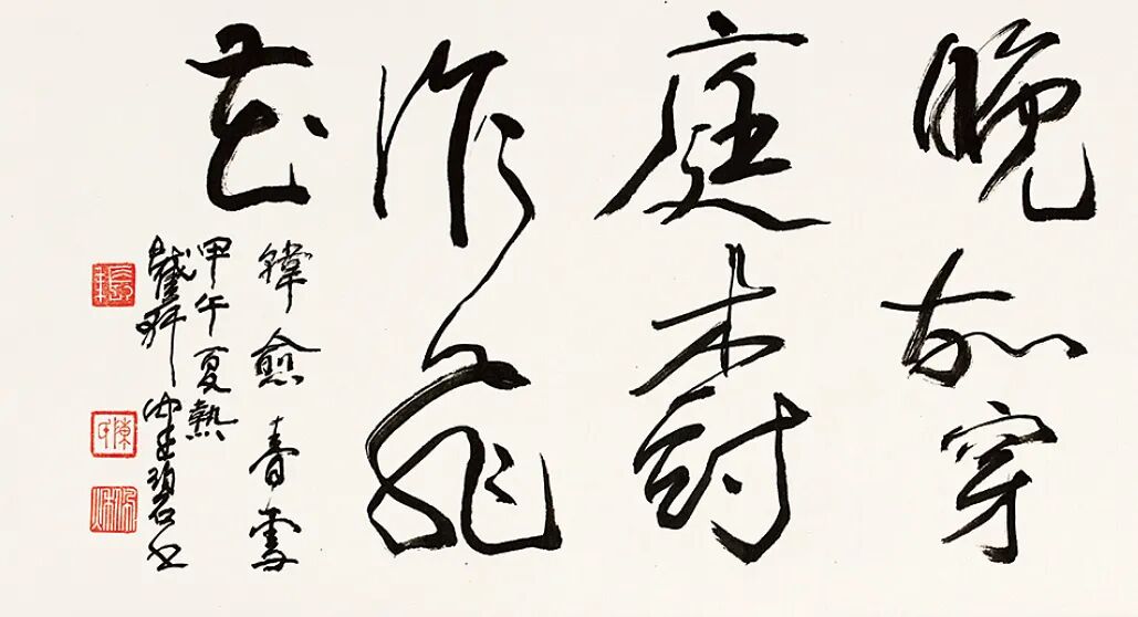 尾跋:新年都未有芳华,二月初惊见草芽。白雪却嫌春色晚,故穿庭树作飞花。韩愈《春雪》,甲午夏热,截玉轩健碧书。钤印:长年、陈氏、佩秋、无绝、大乐