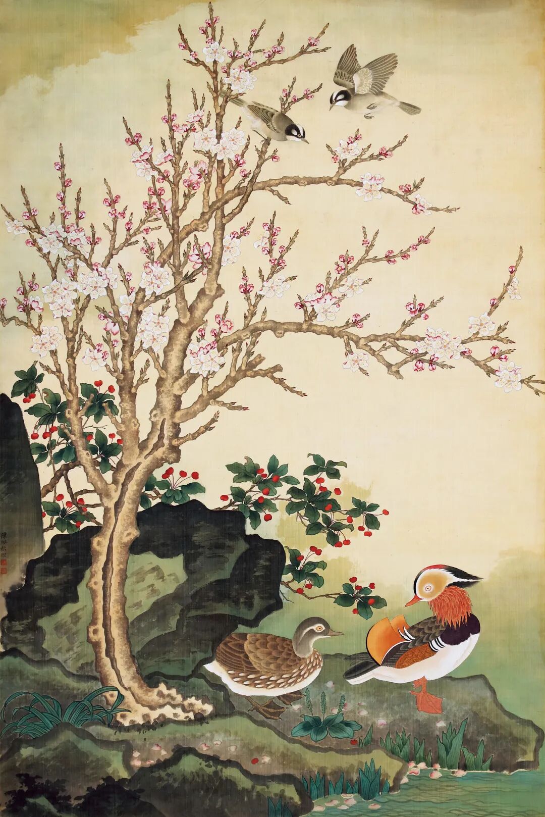 出版:年画《鸳鸯杏花》,上海画片出版社,1958年7月一版一印。