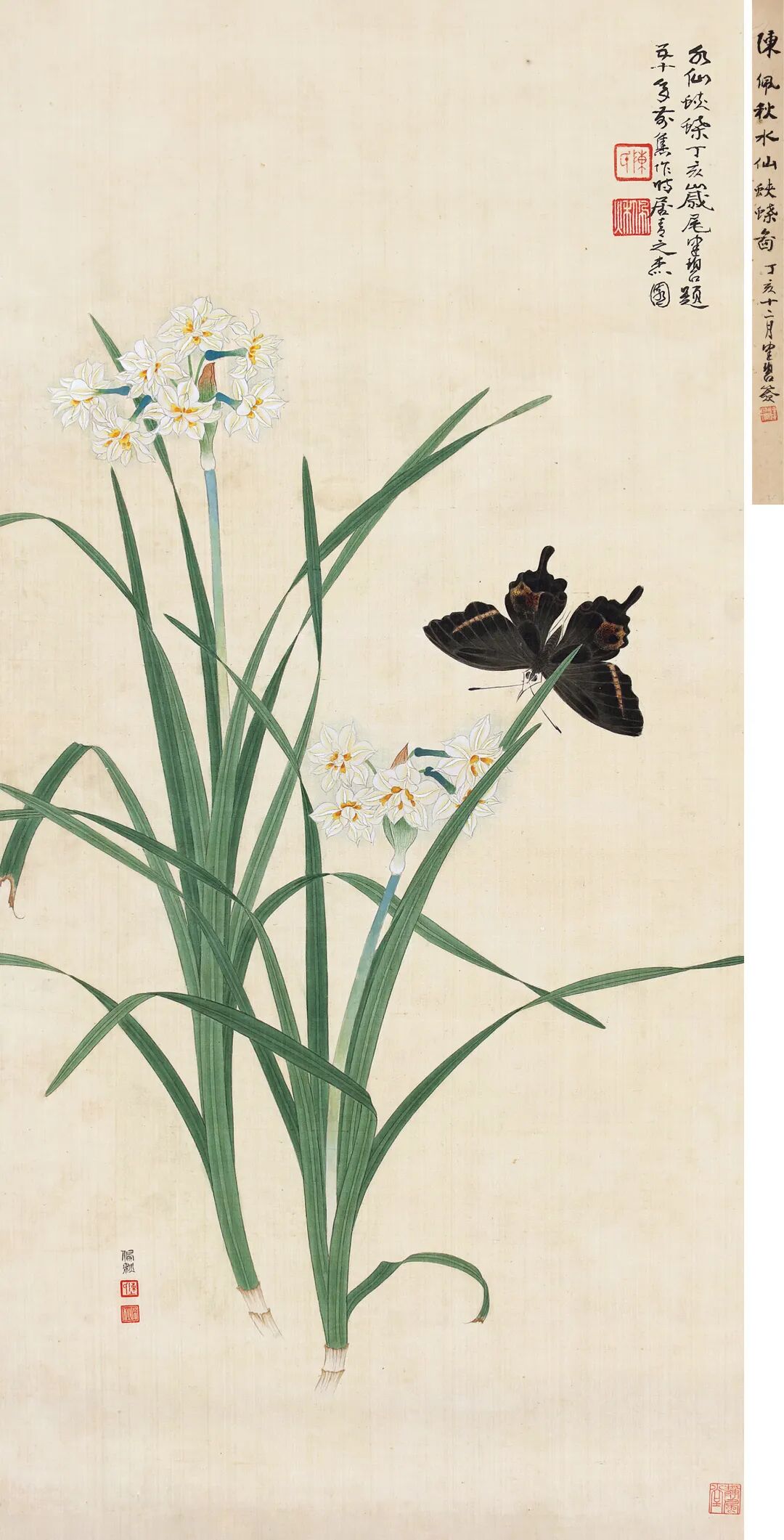 题签:陈佩秋水仙蛱蝶图。丁亥十二月,健碧签。钤印:健碧