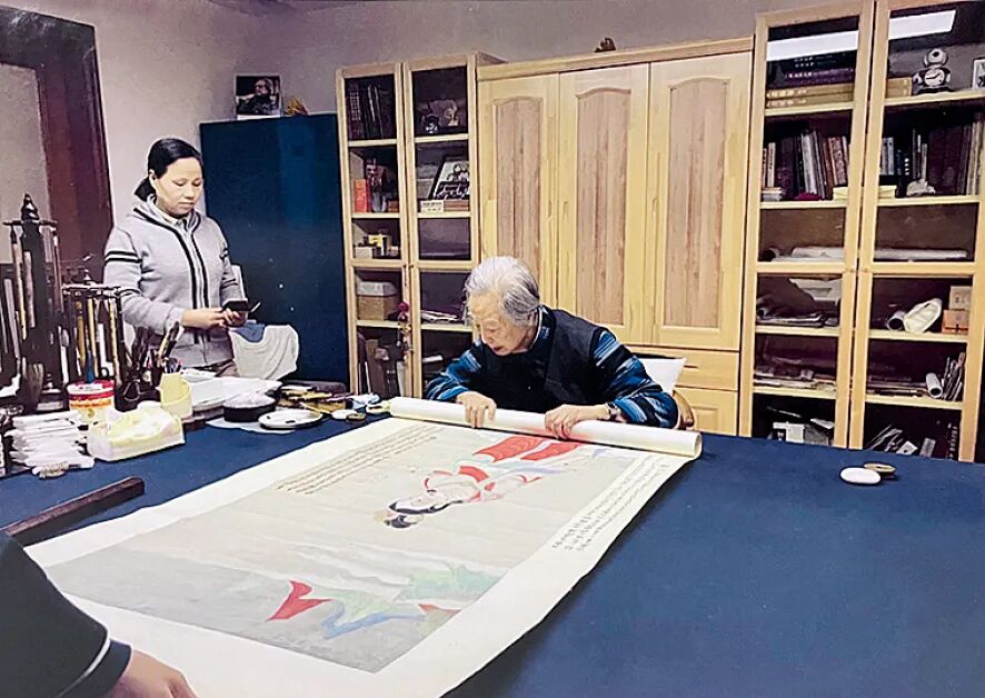 陈佩秋与作品合影