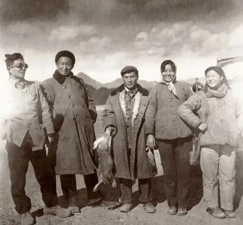 西藏题材这个20世纪的审美富矿,成就了20世纪一批重要艺术家,从董希文、吴冠中等前辈,到陈丹青、陈逸飞、周春芽等当代大家,西藏的人文和精神上的丰富性和复杂性,总能从各个角度给与艺术家灵感与启示,带来惊艳的艺术突破。而追溯这股“西藏热”的起承转合,1961年董希文、吴冠中和邵晶坤三人的西藏写生是无法绕开的。这次原本不起眼的“组织任务”用大量作品将西藏大地生动自然的人文风情带回内地,并借由次年3月全国美协举办的“西藏写生画展”轰动全国,成为中国油画发展史上具有重大意义的关于油画民族化的艺术实践事件。1961年,董希文(左二)与吴冠中(左一)、邵晶坤(右二)等在西藏写生期间合影